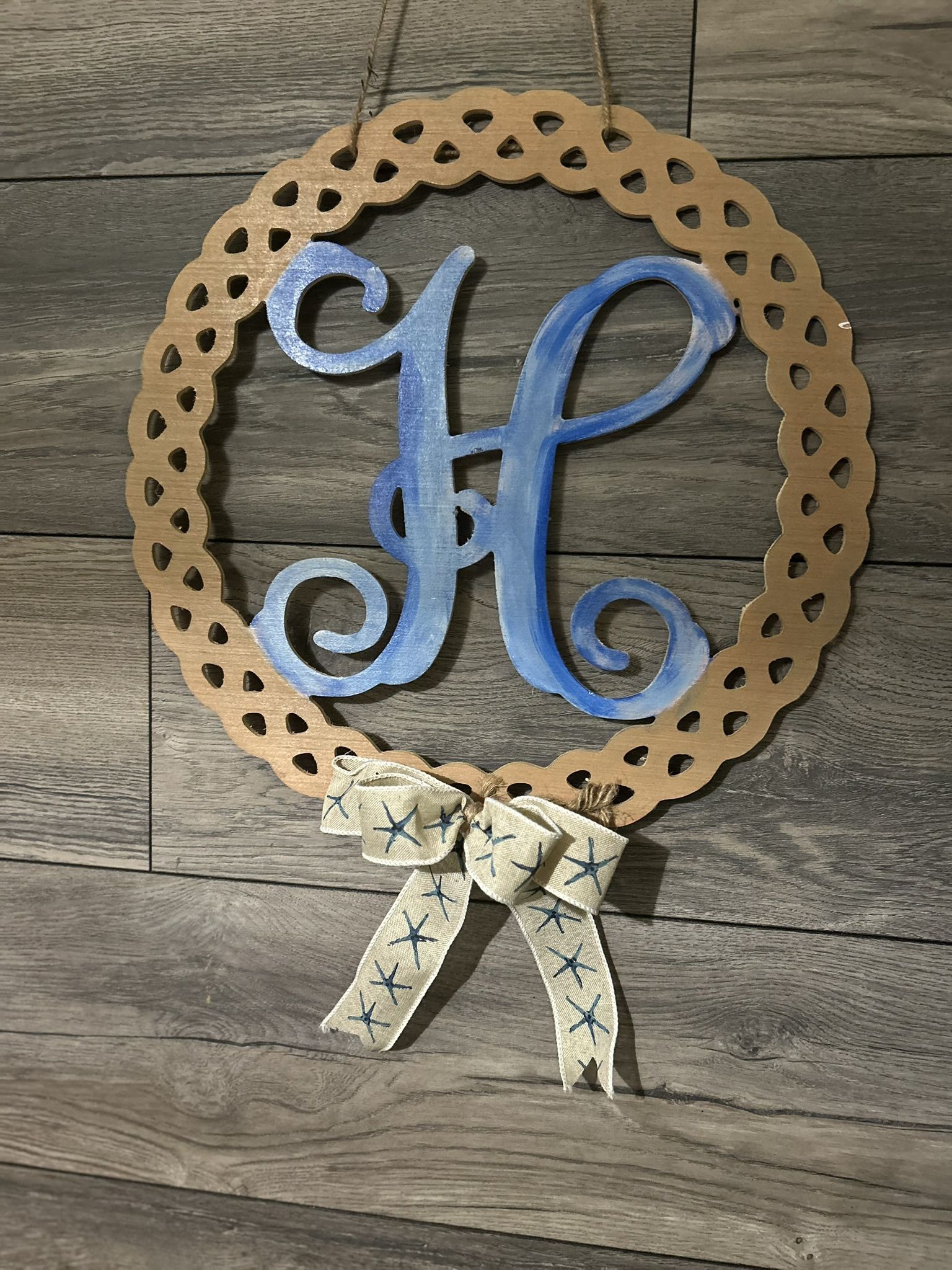 Letter H door hanger. Wooden, hand painted with acrylic multi-surface paint for indoor and outdoor use.