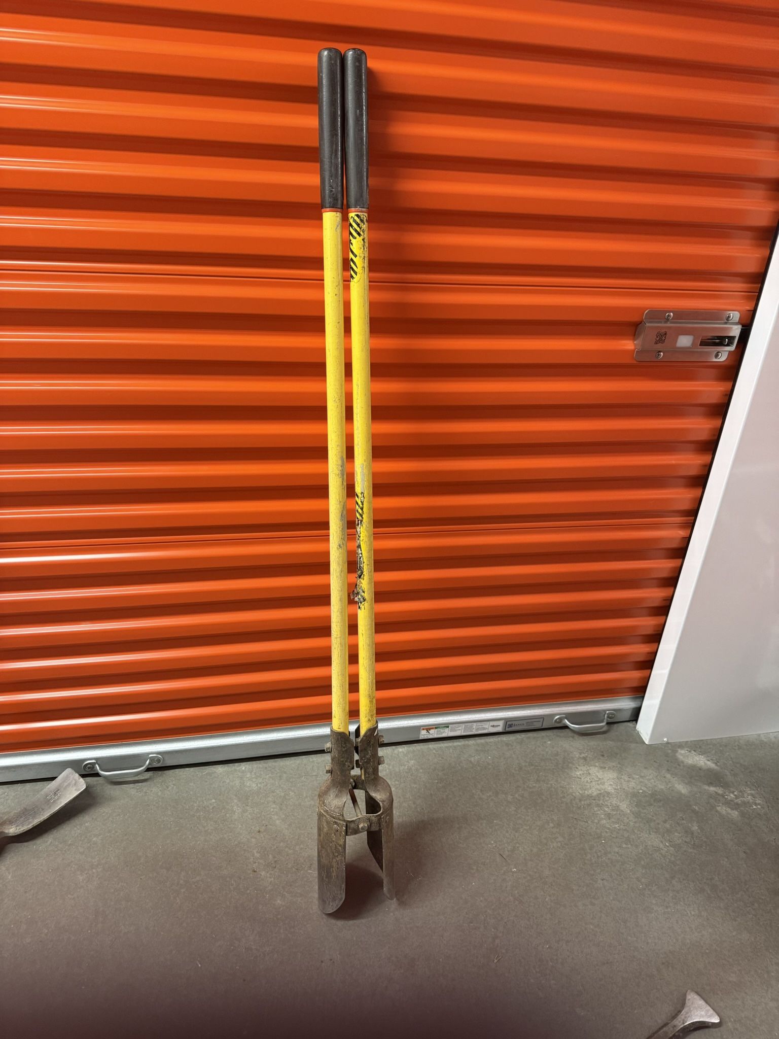 Description (EN / ES): Heavy-duty manual post hole digger (clamshell style) with steel blades and fiberglass handles. Great for fence posts, deck footings, sign posts, planting trees, and general digging. Excavadora manual tipo almeja para hoyos de postes. Cuchillas de acero y mangos de fibra. Ideal para cercas, postes, árboles y construcción. Approx. Specs / Medidas: • Length: ~58–60 in (147–152 cm) • Handle material: Fiberglass • Blades: Steel clamshell • Weight: ~15 lb (7 kg) Keywords: post hole digger, clamshell digger, fence tool, manual auger, landscaping tools, construction tools, excavadora manual, pala para postes, herramienta de cercas