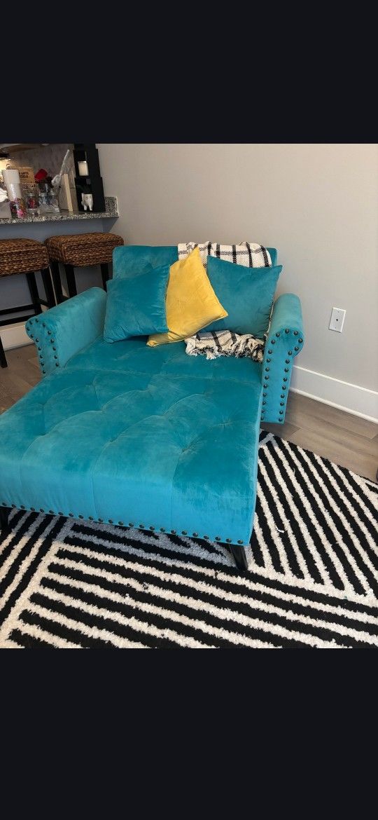 Beautiful Chase Lounge. Ottoman detaches, but does not stand alone. Excellent condition. Color Teal