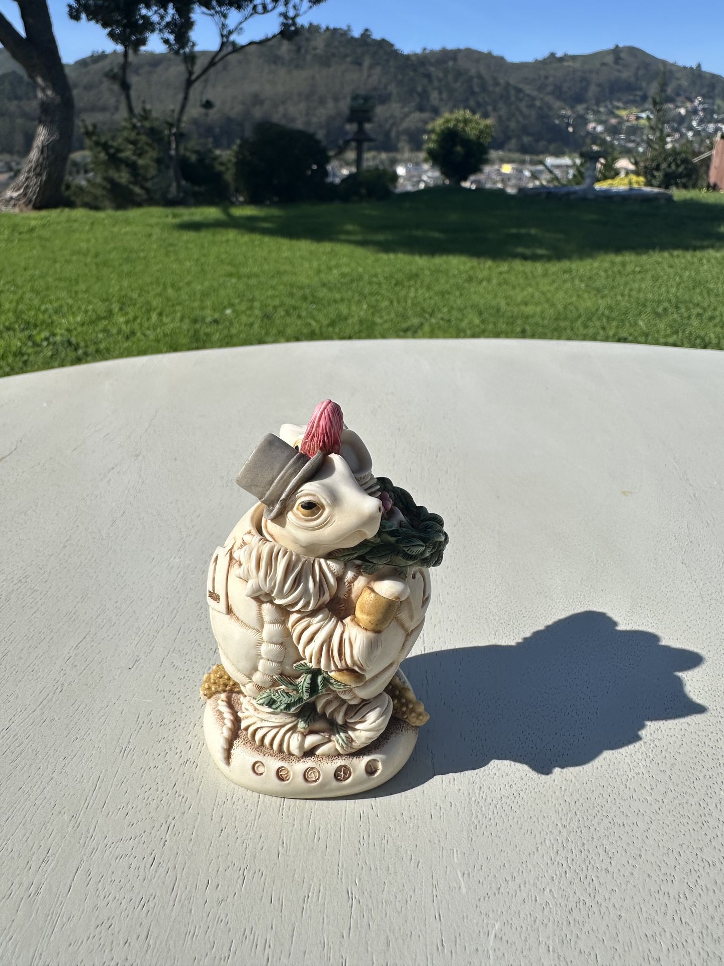 Pick up, preferred. Can also be shipped. Buyer pays for shipping. This item is a Harmony Kingdom "Slow Dance" figurine, specifically a treasure jest box figurine featuring turtles dressed in 1920s attire. Brand: Harmony Kingdom. Theme: "Slow Dance" featuring dancing turtles. Material: Cast from a mixture of crushed marble and resin. Origin: Handcrafted in England