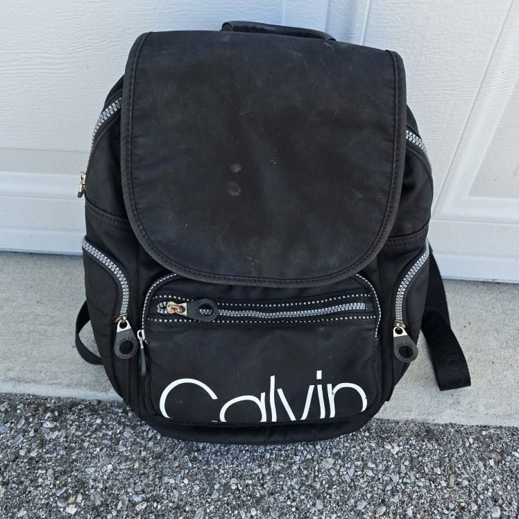 Stylish and practical Calvin Klein backpack in classic black. Features multiple zippered compartments, adjustable logo straps, and a spacious interior. Note: Front button closure is defective but does not affect the overall functionality of the bag. Great for everyday use, school, or travel. Iconic Calvin Klein design Durable and lightweight material Multiple compartments for organization Adjustable logo straps for comfort Functional and still trendy! Priced accordingly due to the minor defect. Message for pickup options.