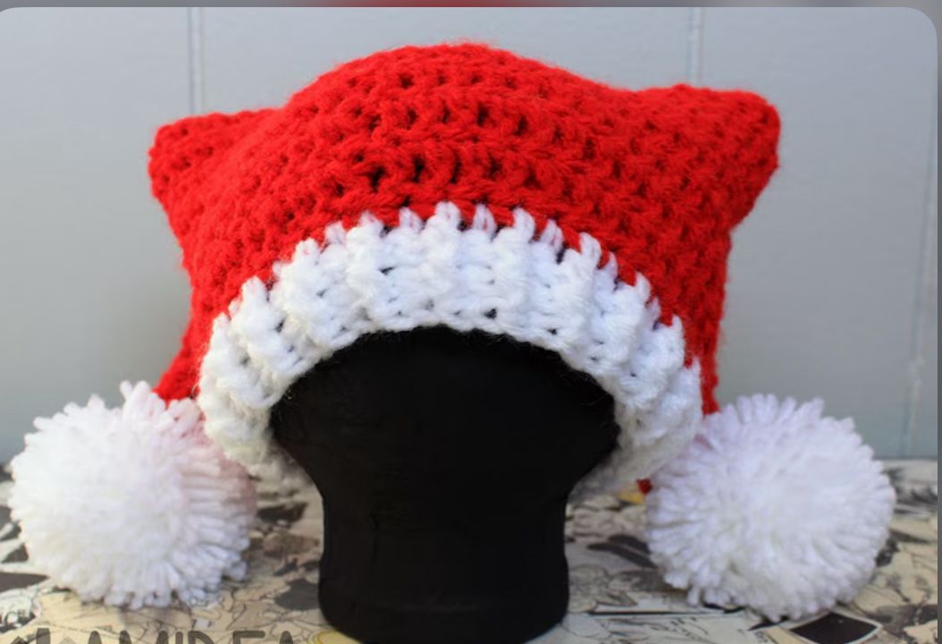 Hand Crochet Double Pom Pom Santa Hat Jingle Bells can be added For &1.00