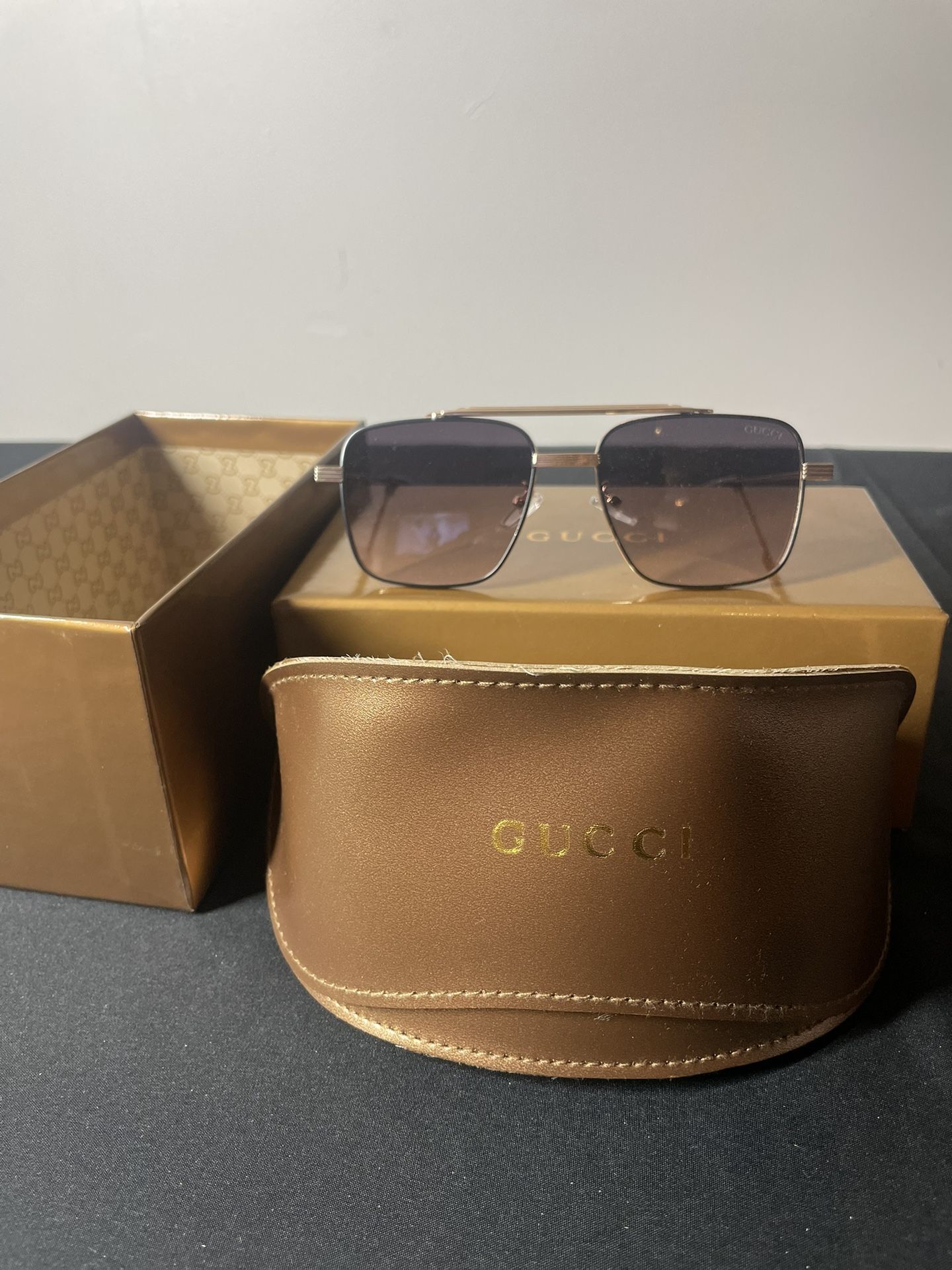 Unisex Sunglasses w/ Case . Brown/Tan . Gold midsize Frame