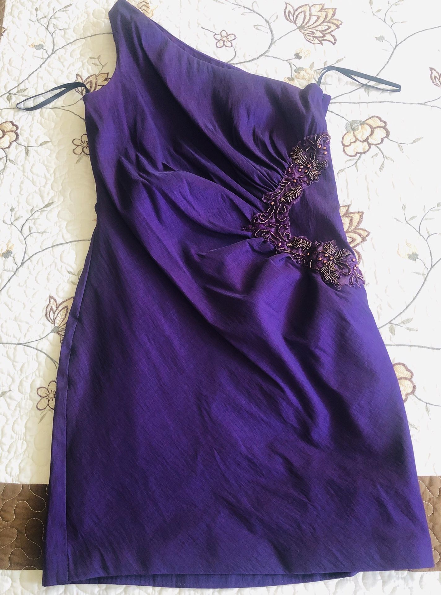 Beautiful Jessica McClintock designer Purple One Shoulder Cocktail Dress. Sise petite (S). Used one time only, Length: Short Bought it at Macy’s $190.00