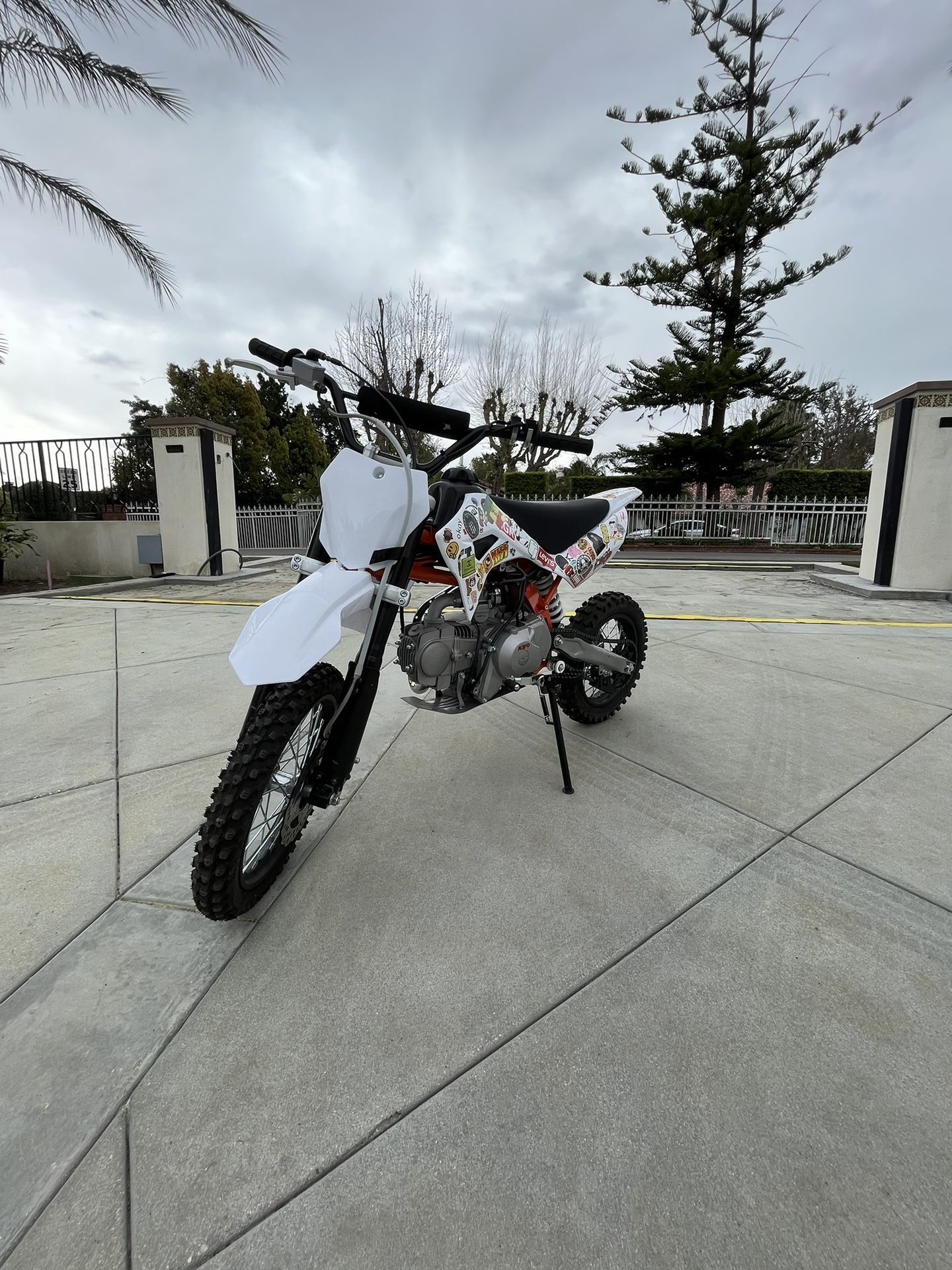 I am selling a dirtbike, this dirtbike has less than 15 miles on it and in perfect condition. This bike also has perfect brakes and it also includes an electric electric start(also has kick start.) If you don’t like the stickers you can take them off and it will leave no mark. This bike can go up to 30-40 mph. This dirtbike is a 125cc no clutch and easy to ride. This bike can go up to 20-30 miles of range. The reason why i am selling this dirtbike is for something else. Also this is an $800 savings from buying from a dealer. If it is too expensive and over your budget just text me and we can negotiate.🏍️