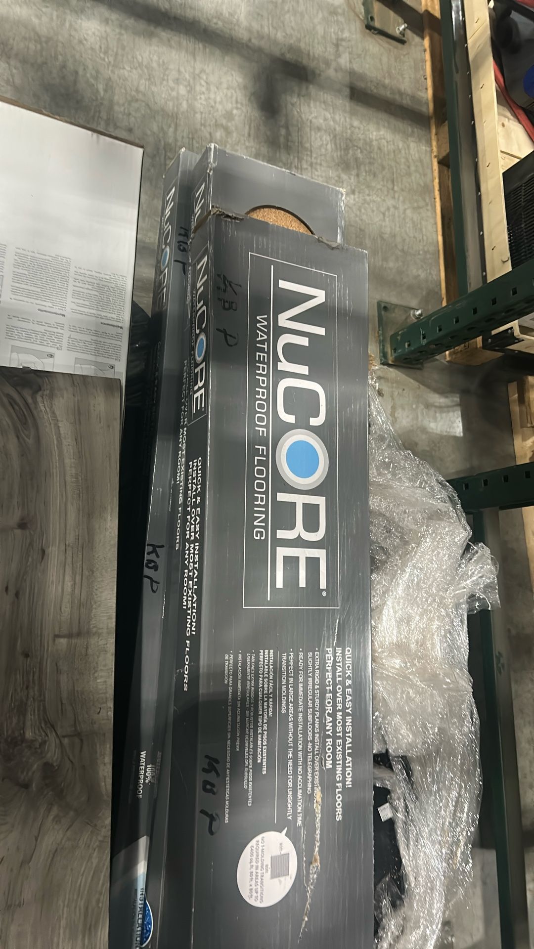 Waterproof flooring, 6.5mm thickness, 10 pieces per box. 23.34 sq per box, i have 4 boxes and 1/2. $2 a sqf 180 take it all