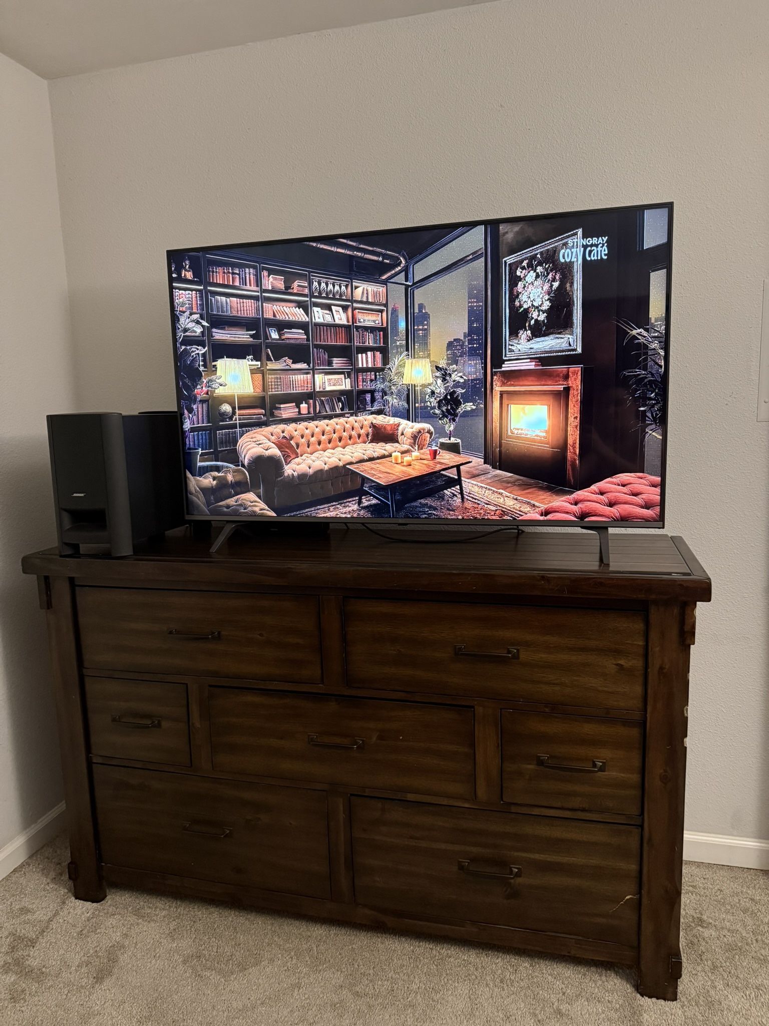 SEND OFFERS. MOVING NEED GONE ASAP. ASHLEY FURNITURE SOLID WOOD DRESSER .ONE DRAWER ON DRESSER NEEDS NEW TRACK. TOP DRAWERS HAVE VELVET COVERING. 66x19x40
