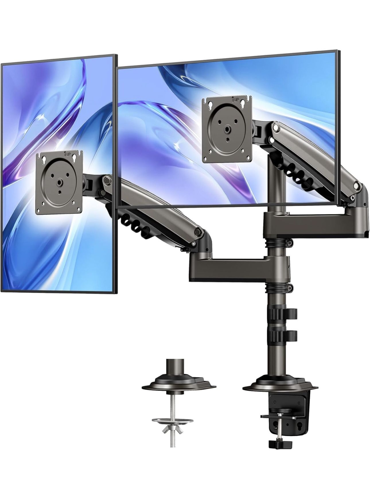 HUANUO 17-32 Inch Dual Monitor Stand, Gas Spring Dual Monitor Mount, Monitor Stand 2 Monitors, Ergonomic Adjustable Tilt/Swivel/Rotate, Weight Max 19.