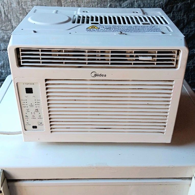 Midea window air conditioner.. 6000 btu Works well The mounting attachments and remote not included.