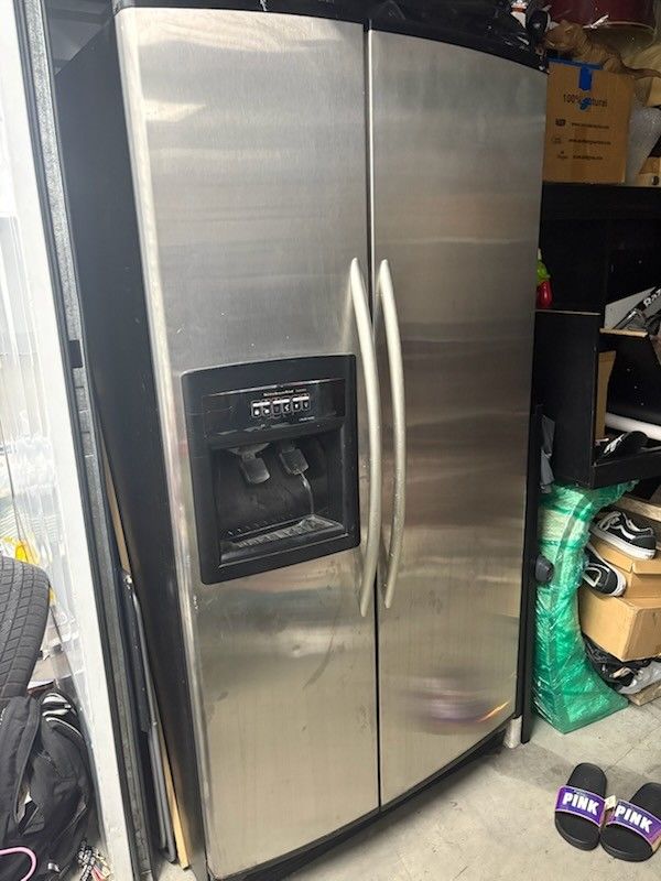 Gun metal double door Kitchen-Aid refrigerator. In great condition stored in the storage. Serious inquiries only please!
