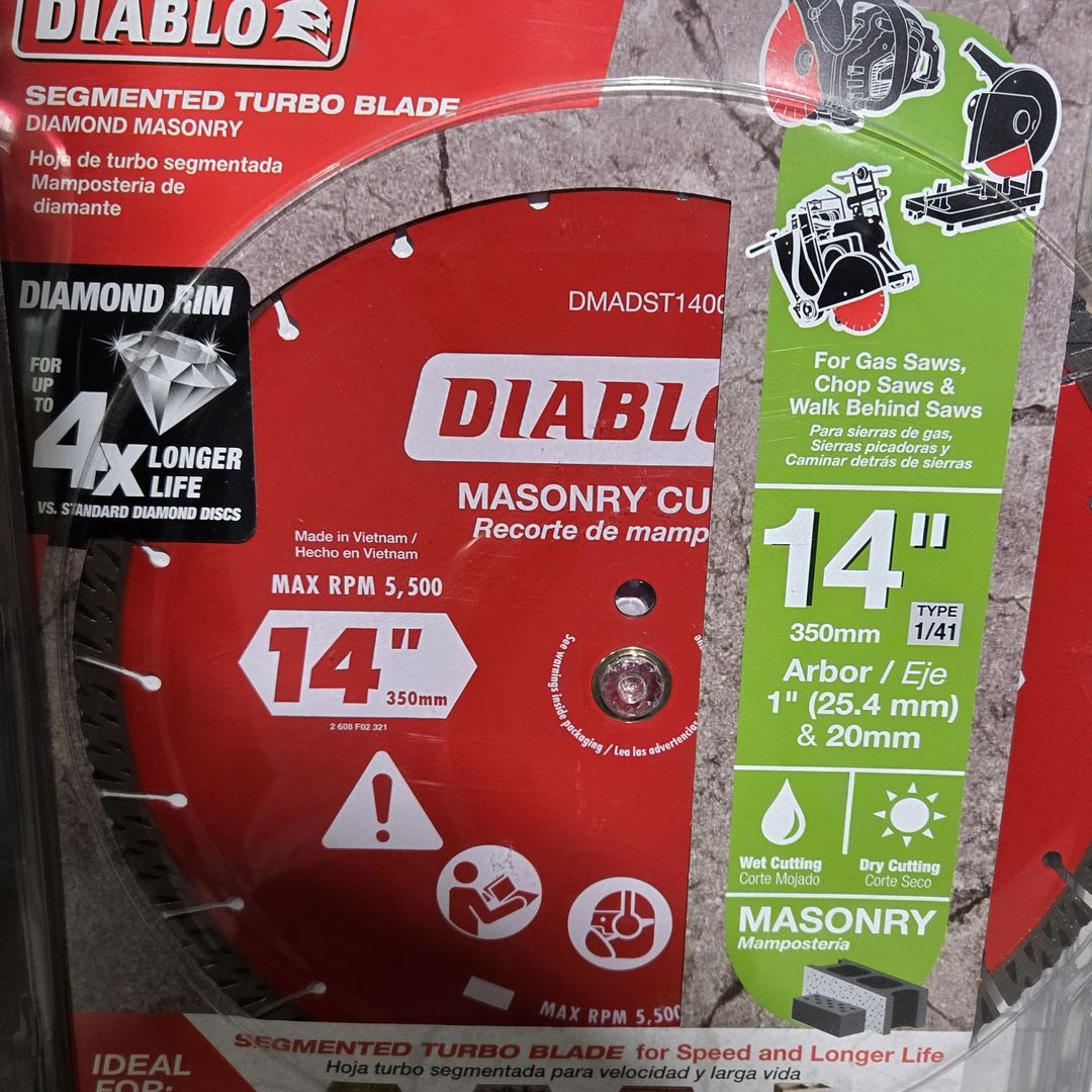 14 in. Diamond Segmented Turbo Cut-Off Discs for Masonry Cuts Through Rebar
