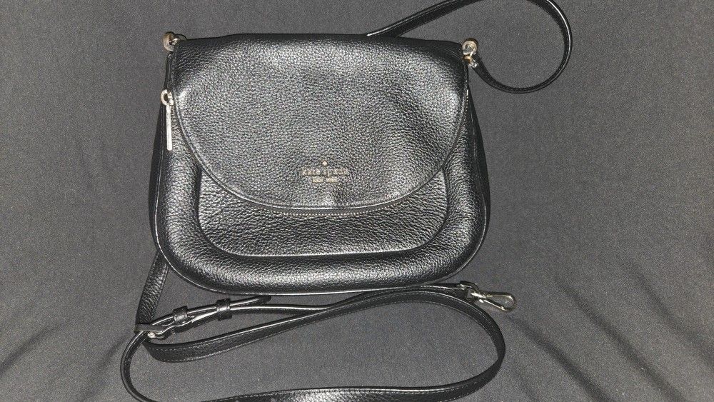 Kate Spade Leila Medium Flap Crossbody Shoulder Bag Pebbled Leather- Black