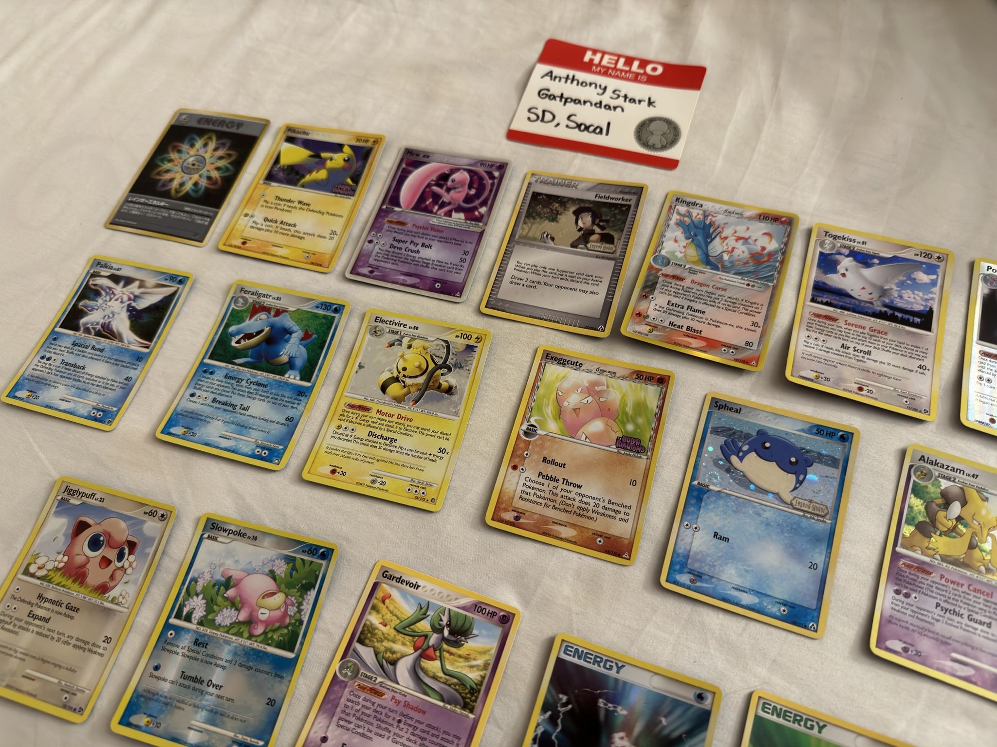 Every card is in very excellent condition. No scratches, dents, or scuffs. Each card has never been played with (exception Japanese rainbow energy). If you would like more pictures feel free to ask if serious about purchasing. Thanks family! $20 Japanese rainbow energy $40 Pikachu reverse holo Holon Phantoms $170 Mew EX $120 Fieldworker holo Legend Maker $50 Reverse holo Kingdra Delta Species $30 Togekiss Great Encounters $20 Porygon-Z Reverse Holo $5 Palkia $8 Feraligatr $3 Electivire $20 Exeggcute reverse holo Holo Phantoms $8 Spheal Legend Maker $25 Alakazam $5 Jigglypuff reverse holo $5 Slowpoke reverse holo $20 Water Energy reverse holo $5 Grass Energy reverse holo $8 Gardevoir