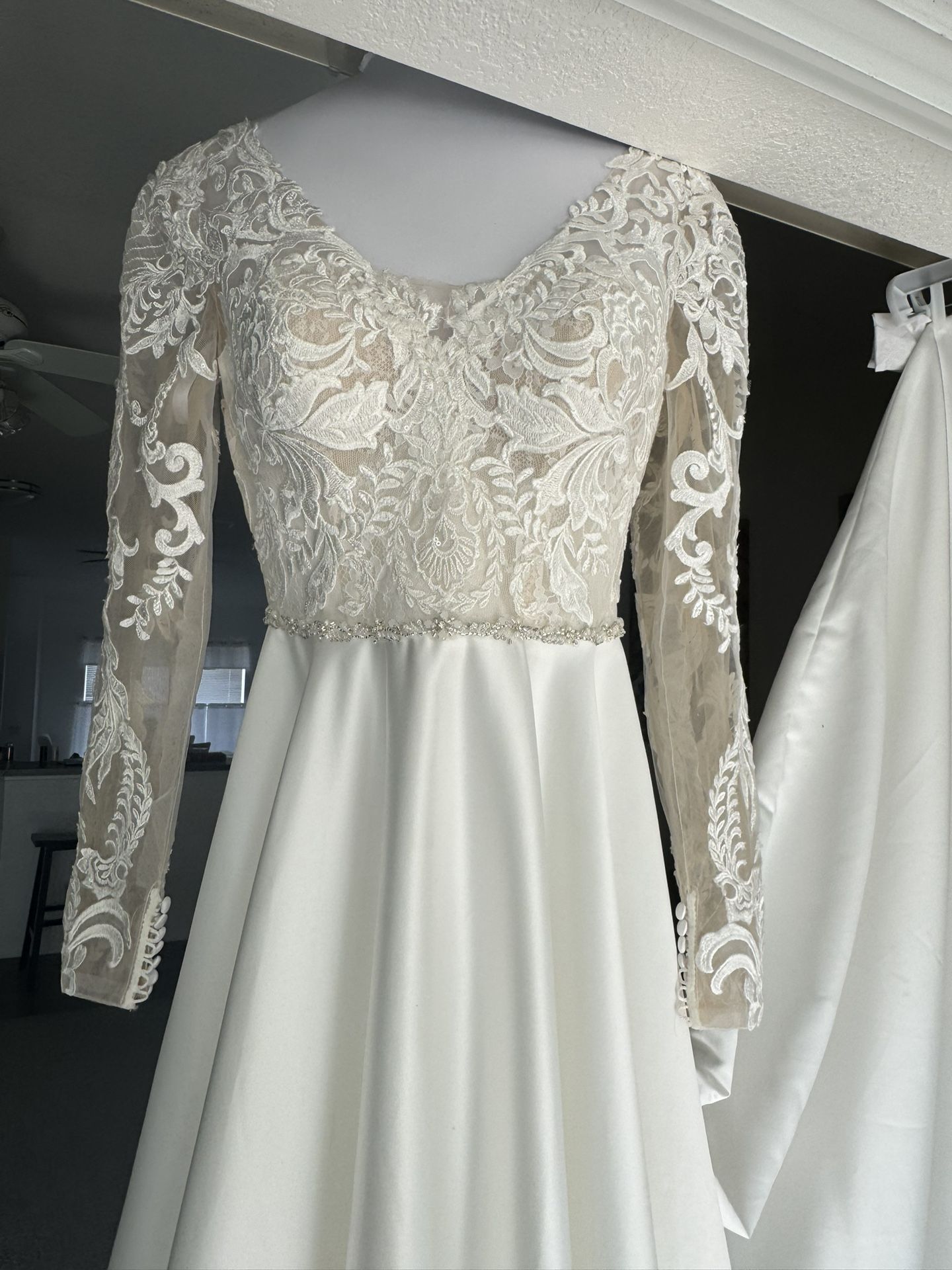 Long Sleeve Lace & Satin Wedding Dress *SIZE 6*