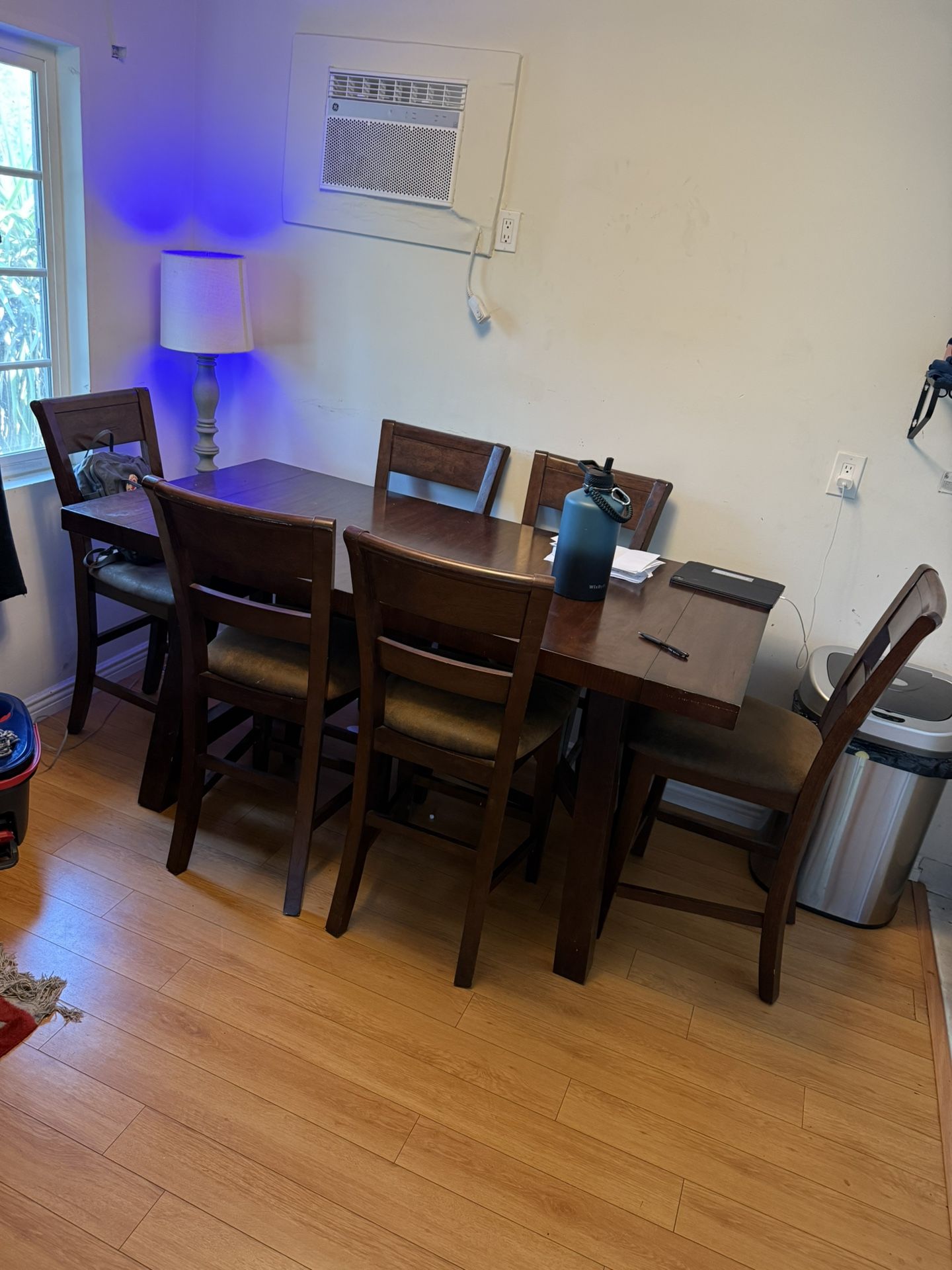 Really good condition nothing major! It opens up and longer in length has extra part underneath the table