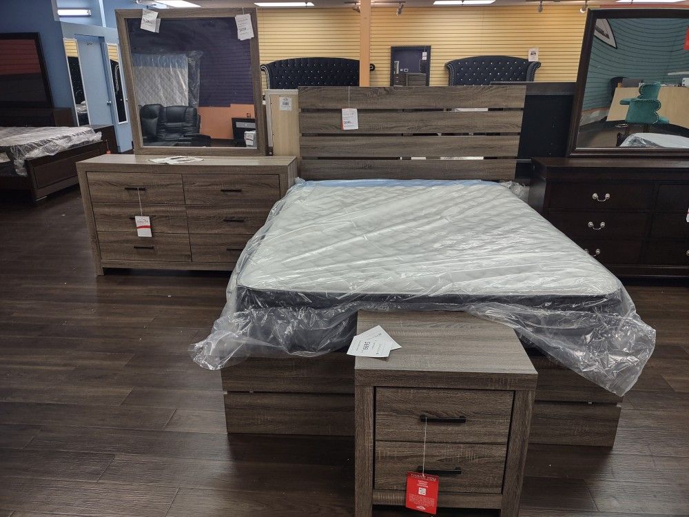 4 Piece Queen Bedroom Set Queen Bed Frame Dresser Mirror And Nightstand