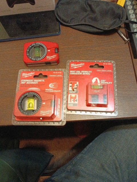 3 Magnet Pocket Level , 48-22-5102 Two Of Them And One Pipe Lock Level 48-22-5001 All For $40