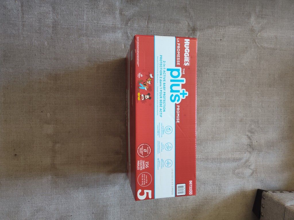 Size five Huggies Little movers Plus 156 count over 27 lb Plus
