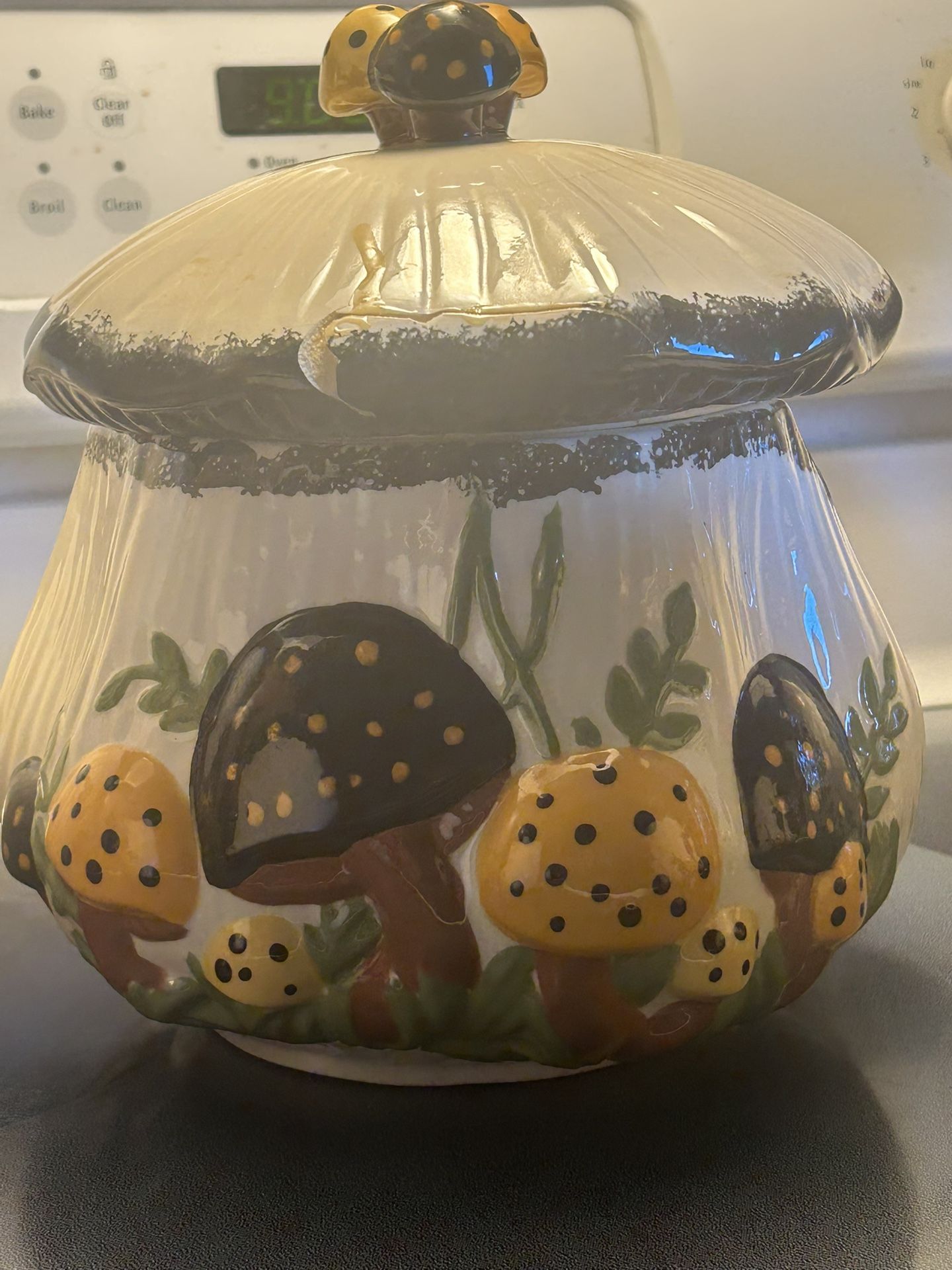 Mushroom themed canisters Arnel Merry mushroom ceramic canister set. From 1970s