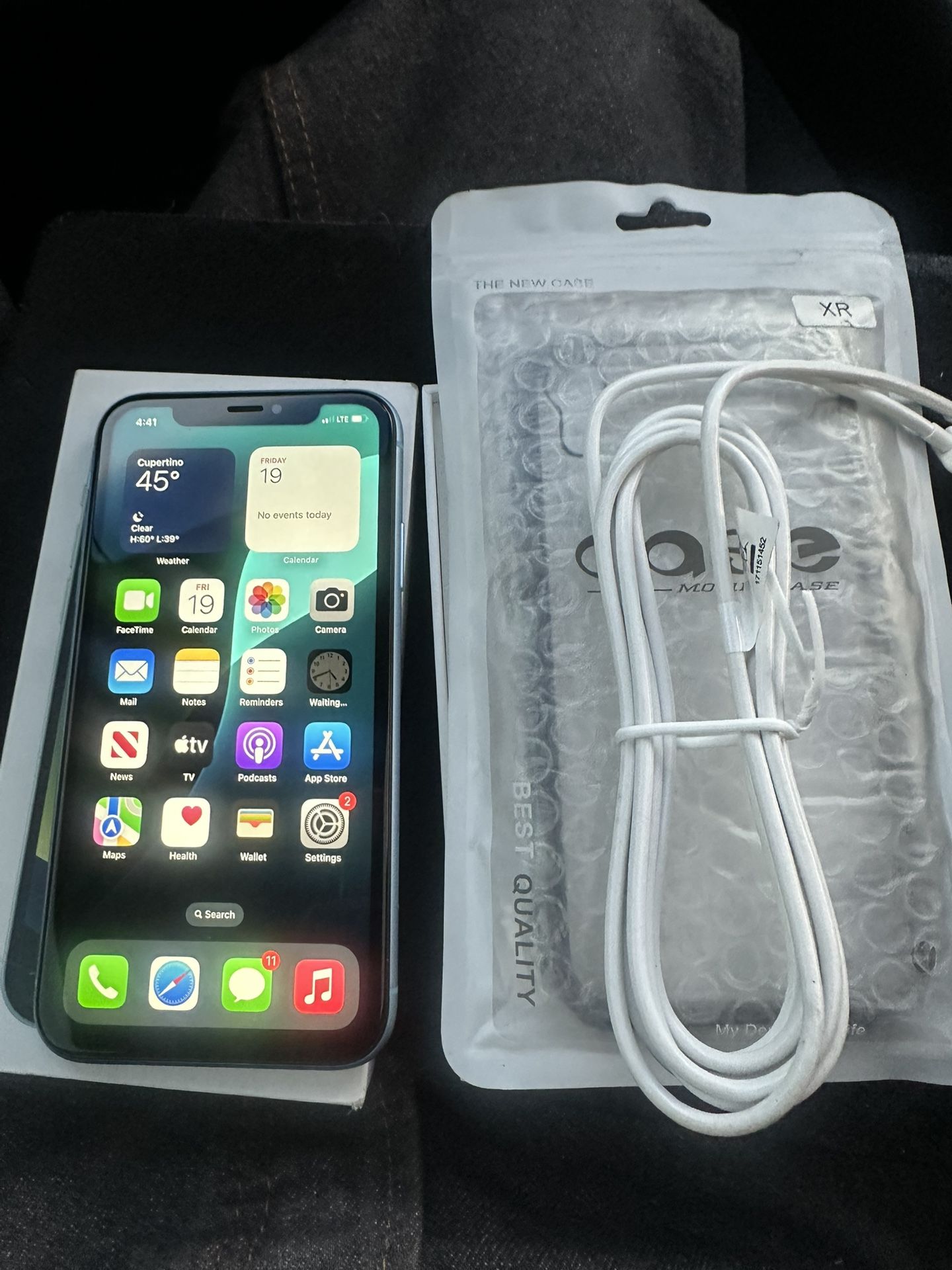 iPhone XR 64gb unlocked for any service it’s a 9.5 out of 10 works perfect new accessories battery 100% 90 day warranty can deliver 125$