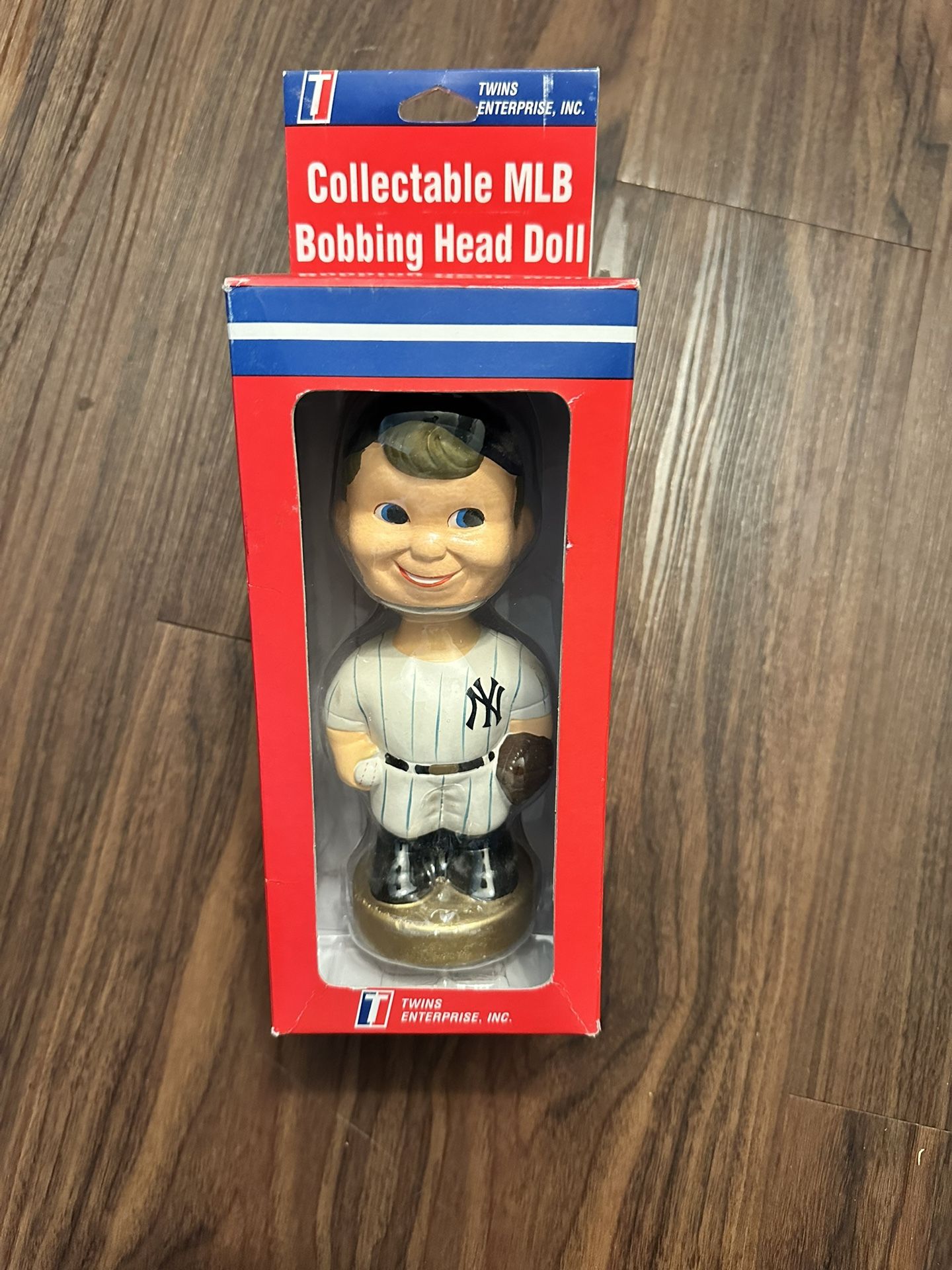 New in open box Never removed Vintage Original Twin Enterprises Bobbing Head Doll NY Yankees Bobblehead Weighty item Solid piece Nice box Great colors Nice blister Stands and displays wonderfully Cool collector item if you’re a fan of baseball or the Yankees. Generic figure, no player numbers Check the photos Ask questions you may have Clean Smoke Free