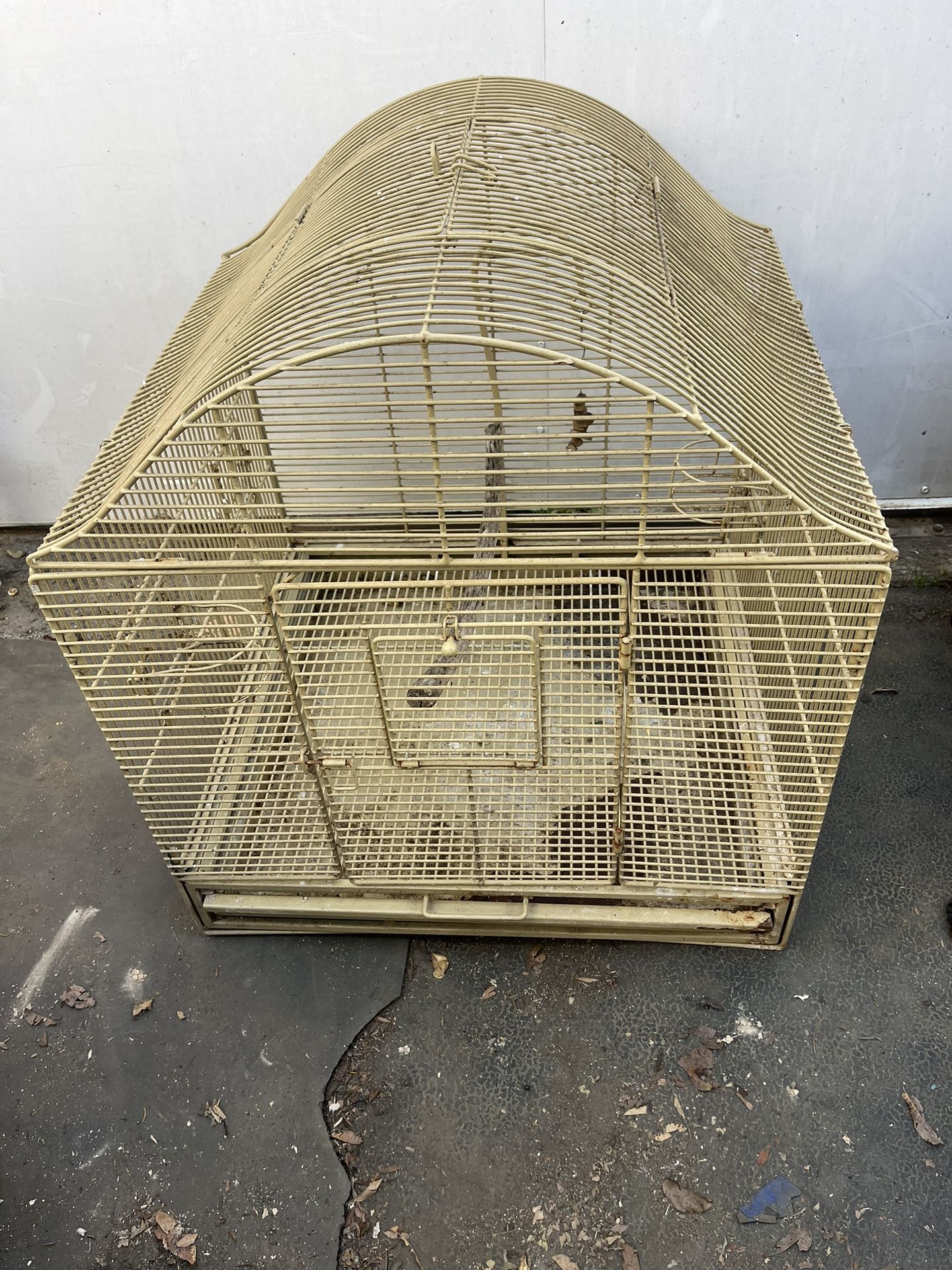 One used bird cage with some rust at the bottom, but still can be cleaned up and used. 24” wide 22” deep 26” tall Pick up at my home in Norwalk SoCal.