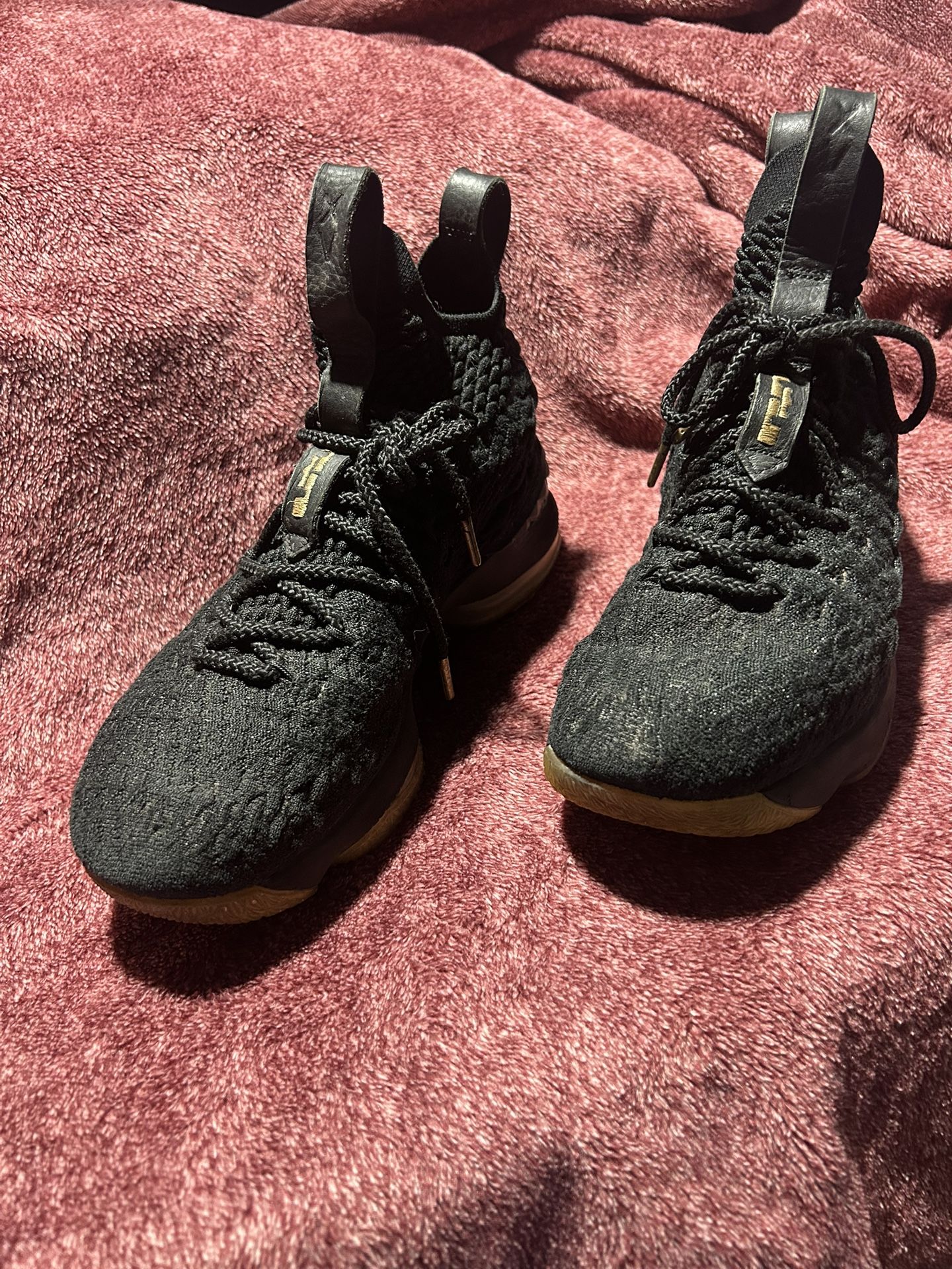 Men's Nike LeBron 15 XV Metallic Gold Black Basketball Shoes size 6