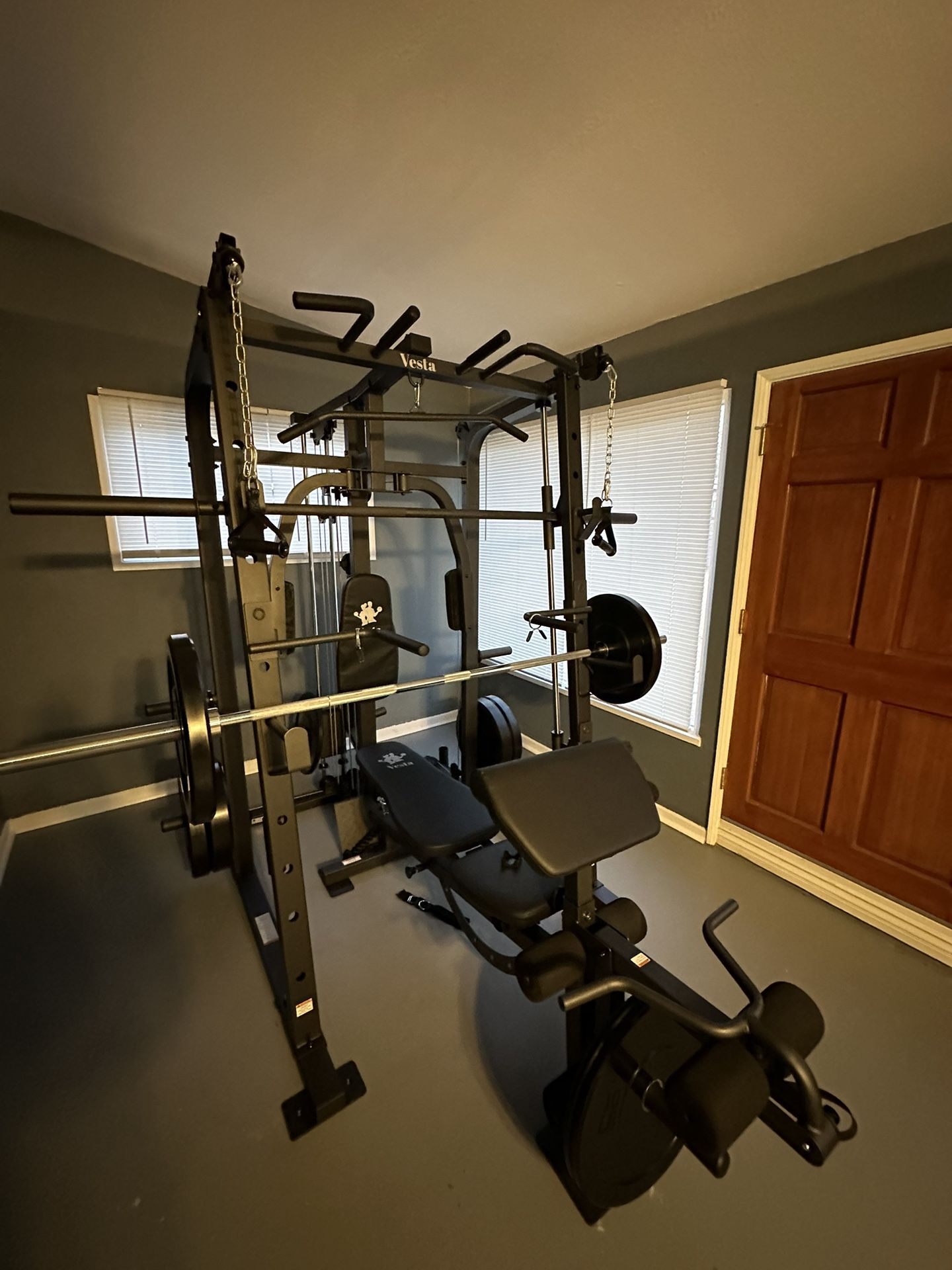 Vesta Fitness Smith Machine 1001 w/Bench Attachment | 245lb Cast Iron Olympic Weights | 7ft Olympic Bar | Fitness | Gym Equipment | FREE DELIVERY 🚚
