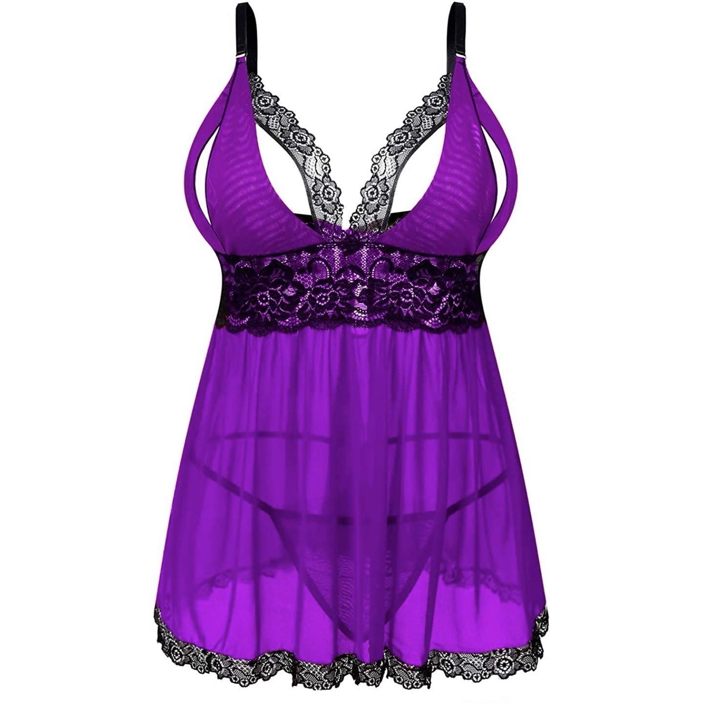 Women’s Purple Black Lingerie Dress Babydoll Chemise Sleepwear