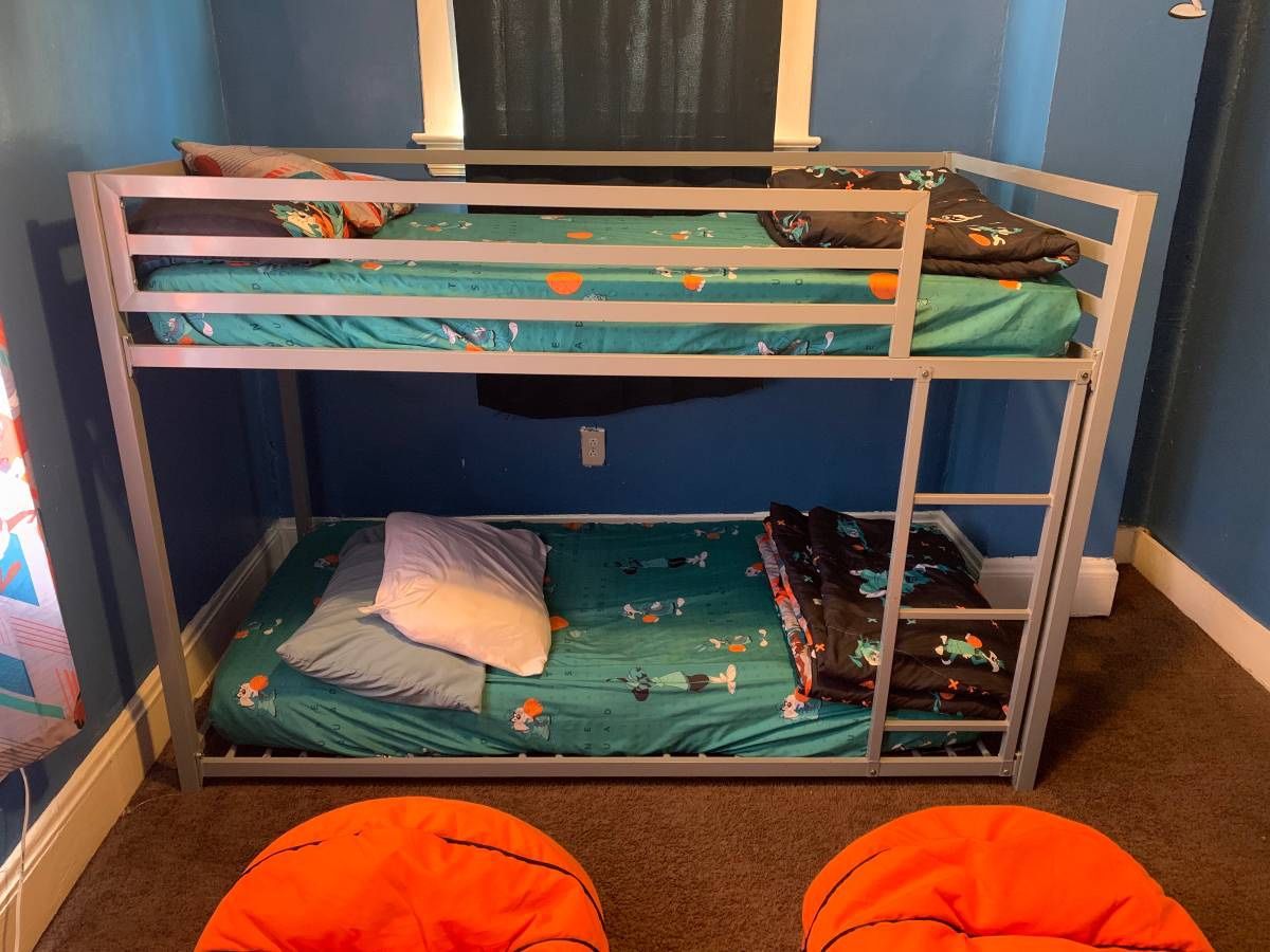 Metal squeak free twin bunk beds in like new condition (mattresses ARE NOT included) (BUNKBED ONLY) (Delivery and Shipping NOT available)(SERIOUS INQUIRIES ONLY) bed is already broken down for easy pickup