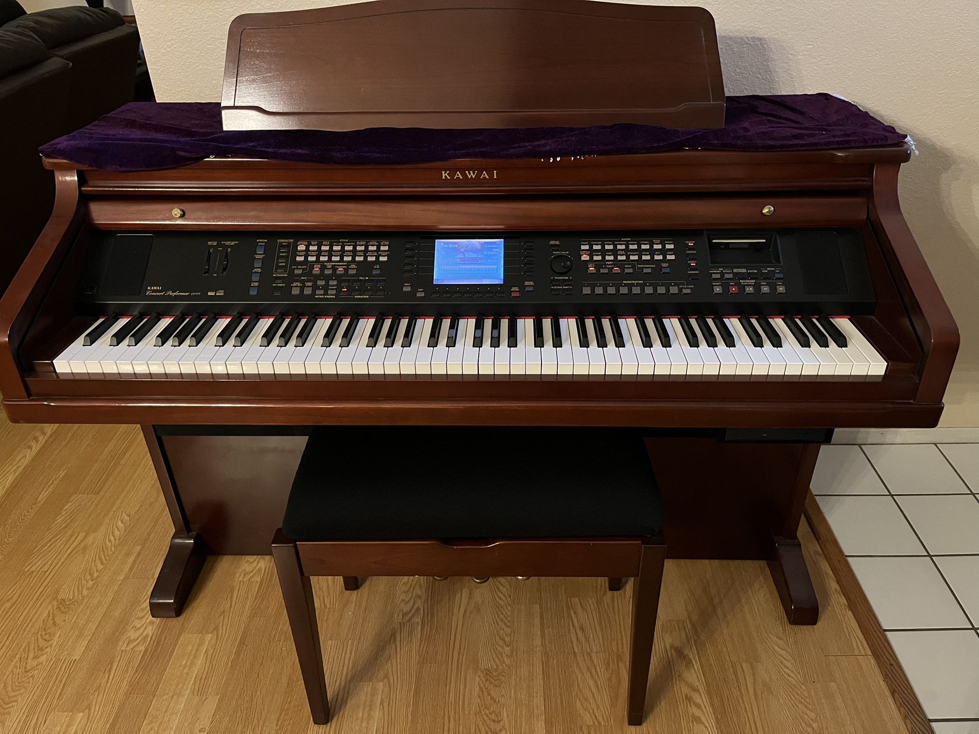 Great instrument for church, small medium social venues, home use, midi capable. $850 or best reasonable offer. Serious buyers only. We will not reply to inquiry “Is this available” CD Recording Capability with DVD Playback AWA-Pro Wooden-Key Graded-Hammer Action 100-Watt, 6-Speaker Sound System • Over 1000 Sounds • 282 Accompaniment Styles, 4 Variations, 4 Intros & Endings • Over 7 Hours of Built-In Piano Music (4 Categories) • Song Stylist – 1000 Songs (compatible with 13 Hal Leonard Books) • Score Display • Mic Input with Harmony and Effects • Available with matching bench. LP