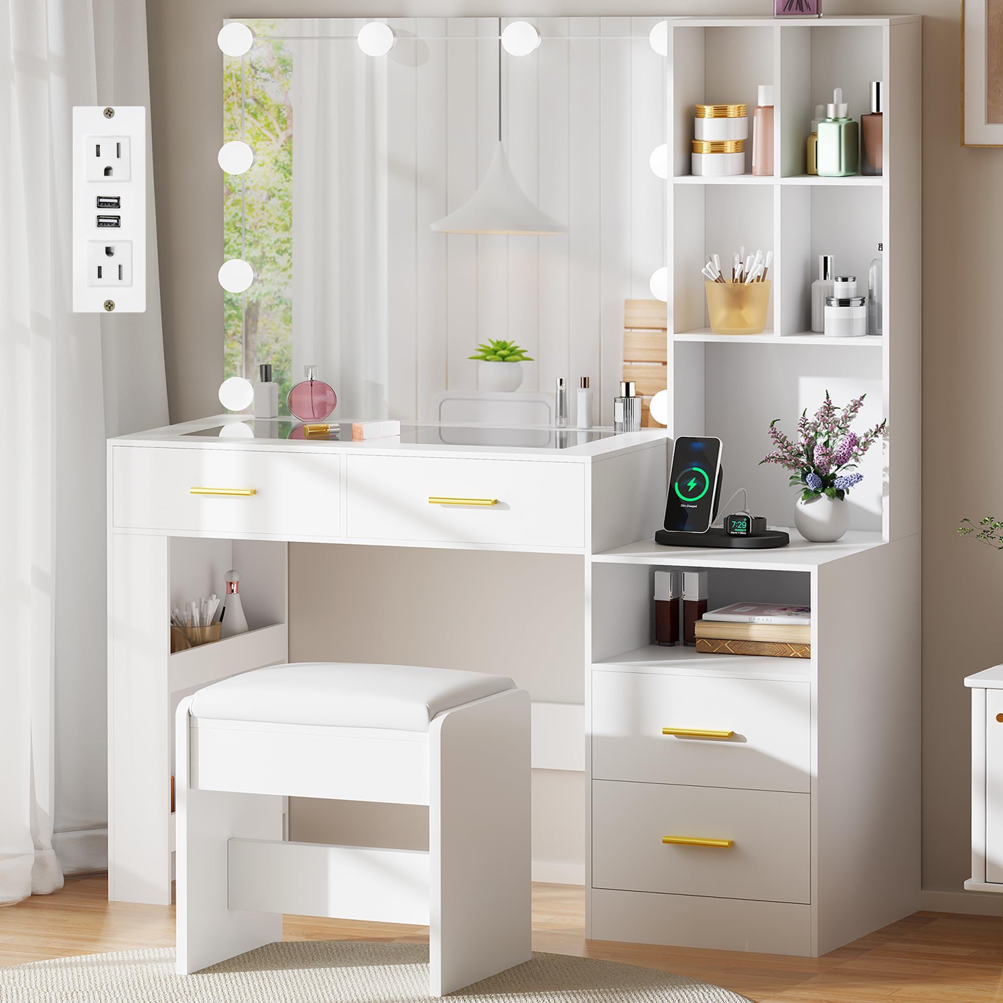 This white makeup vanity is equipped with a lighted mirror that offers 3 color modes: warm light, natural light, and cool light. It features adjustable brightness to meet your lighting needs for daily makeup application. Discover your ideal glow and effortlessly enjoy a modern, smart lifestyle The vanity table features a tempered glass tabletop that provides ample space for display and allows for clear visibility of the items in the drawer, making it easy to access them quickly. Additionally, the tempered glass tabletop offers enhanced durability and a strong load-bearing capacity. This make up vanity features a built-in charging station that includes 2 USB ports and 2 standard plug sockets, allowing you to charge your phone, desk lamp, or hair dryer conveniently and simultaneously. It is easily accessible and provides great convenience •White Color •Dimensions: 15.75"D x 31.5"W x 55.31"H •In box 📦 •Assembly is required Pick up Baldwin Park, Ca 91706 Pay cash please Check out our profile for more listings!! C517
