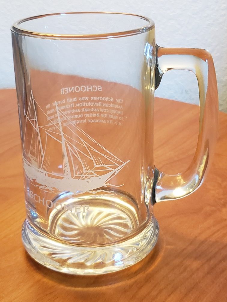 Pictures are the best description One (1) Schooner Sail Boat Glass Stein Small Mug 5 1/2 inches tall No cracks, chips, or repairs