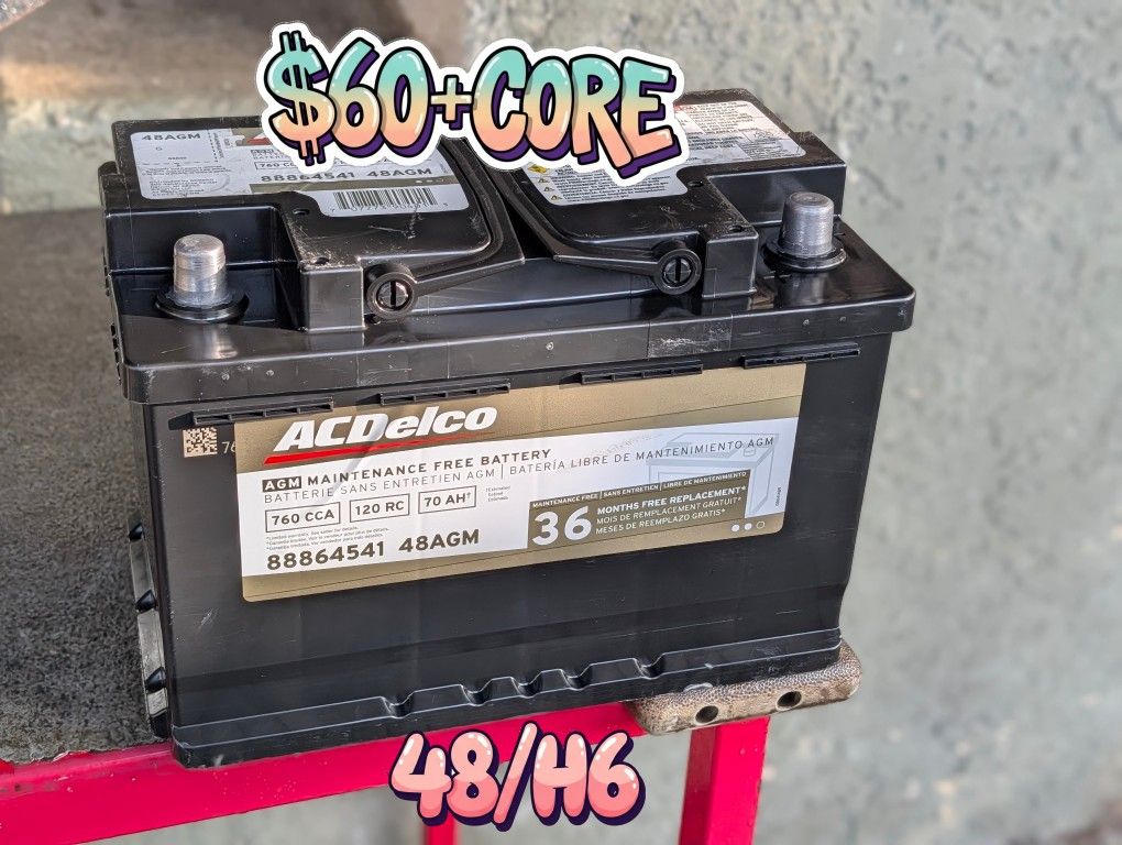 AGM Car Battery Group Size 48/H6 2024 In excellent condition. Fully Tested. $60 with core exchange (old battery) or $70 without. You're welcome to bring your own tester, but I'll also provide one. Payment accepted via Cash or Zelle. Located in Boyle Heights.