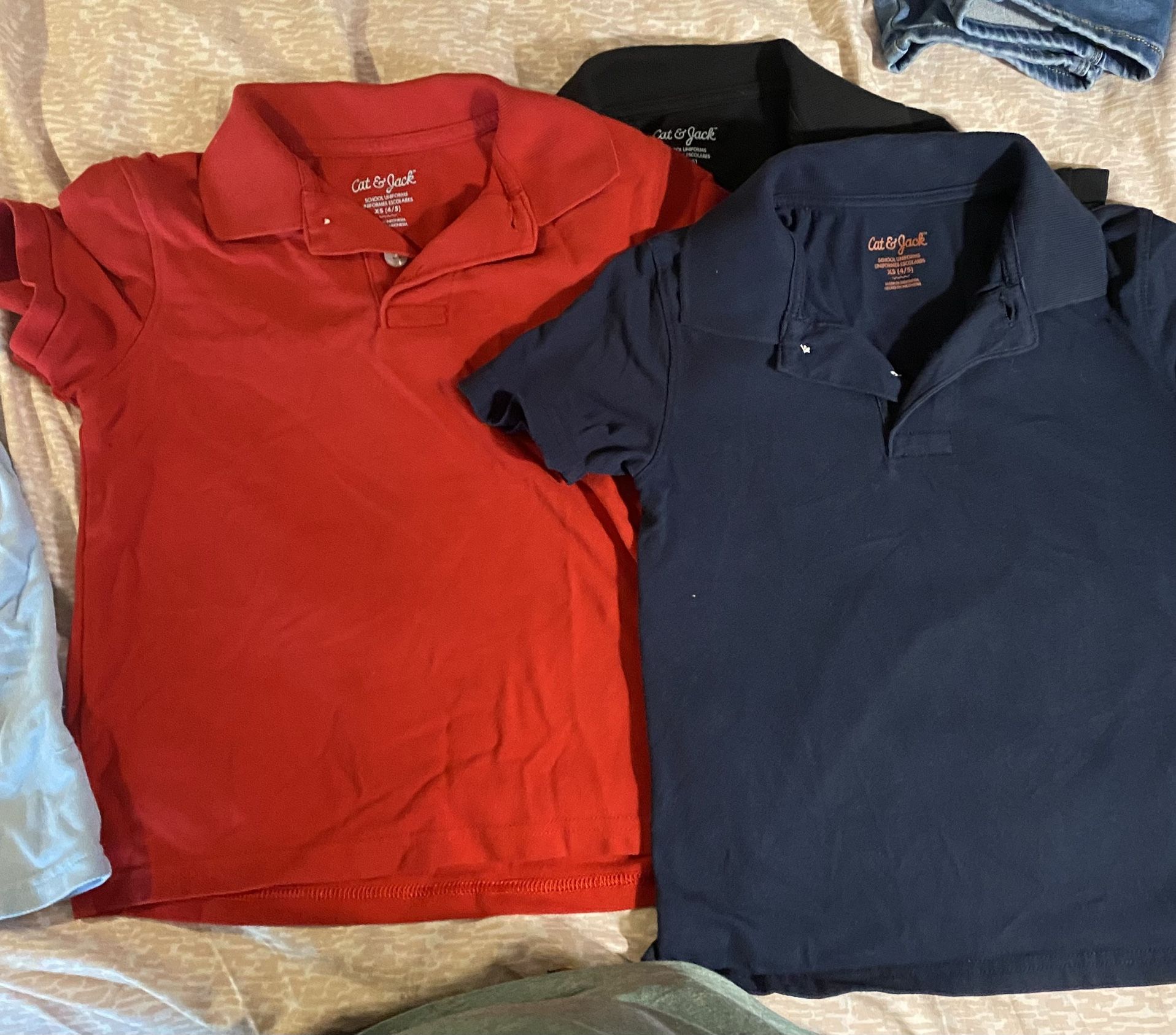 School uniform. Cat & chack Sizes 4/5 2 Blacks 1 Blue 1 Red $3.00 each