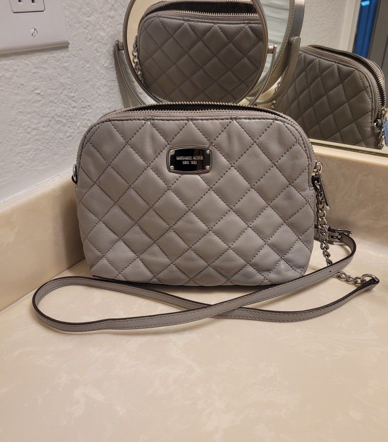 Michael Kors Gray and Silver Quilted Crossbody