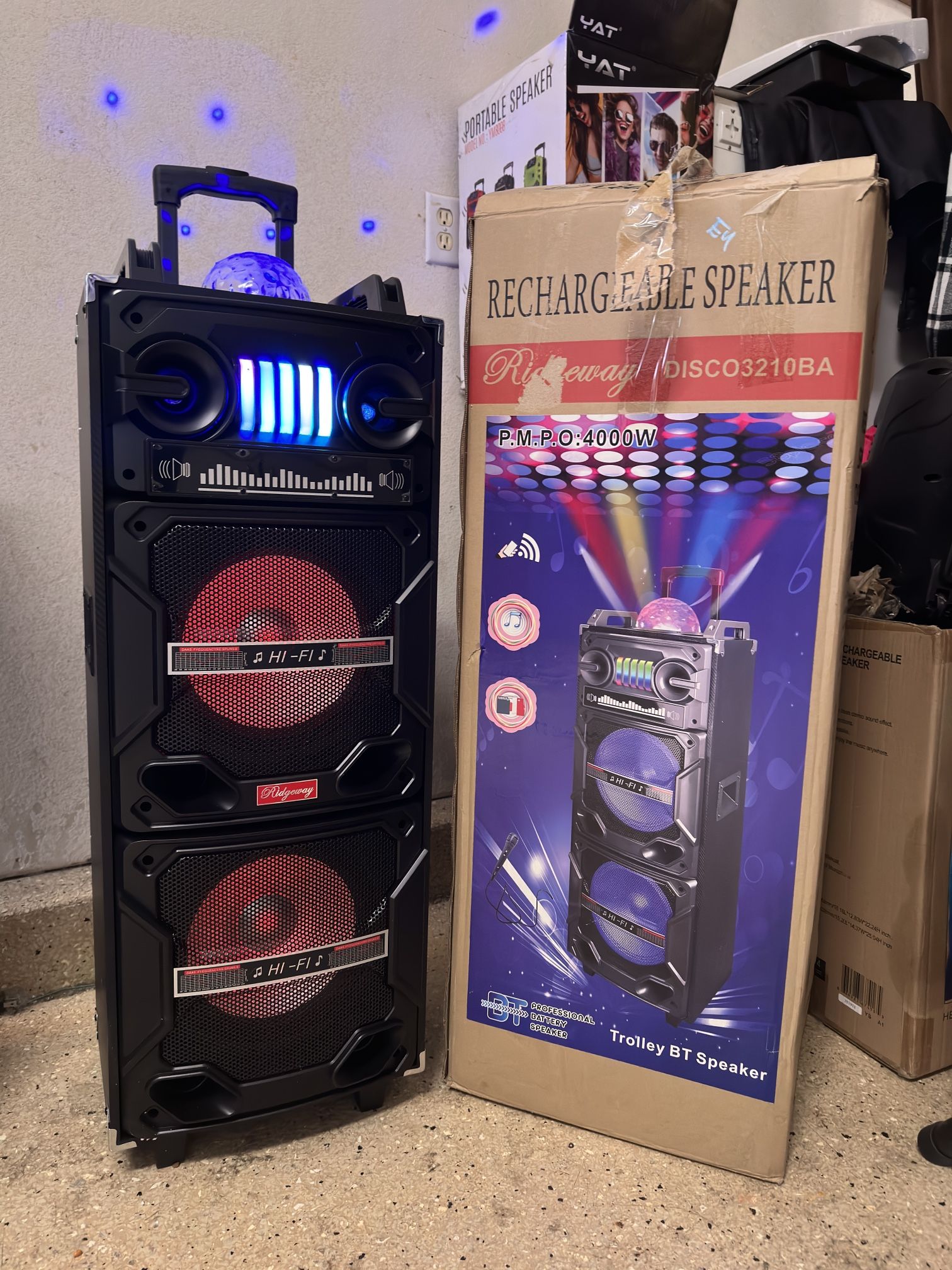 Wireless Music player - dual 10” Woofer Bluetooth - Fm Radio - Rechargeable MICROPHONE & CHARGER INCLUDED ! USB PORT - SD MEMORY SLOT - Portable Compatible with any Bluetooth device ! VERY LOUD ! GREAT FOR OUTDOORS AND PARTIES !
