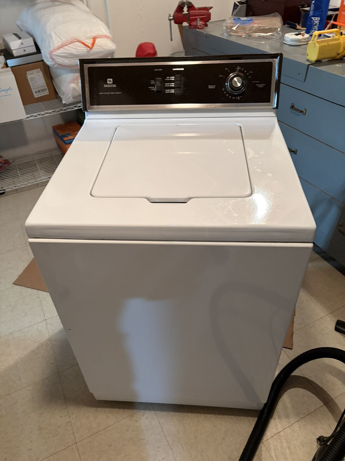 Maytag series 11 model A105 **only buy this if you are into fixing washing machines** Was here when I moved in back in 2007 and worked great until 2025. It could be over 30 years old? The agitator stopped working. There could be more issues than that but that's what I know for sure.