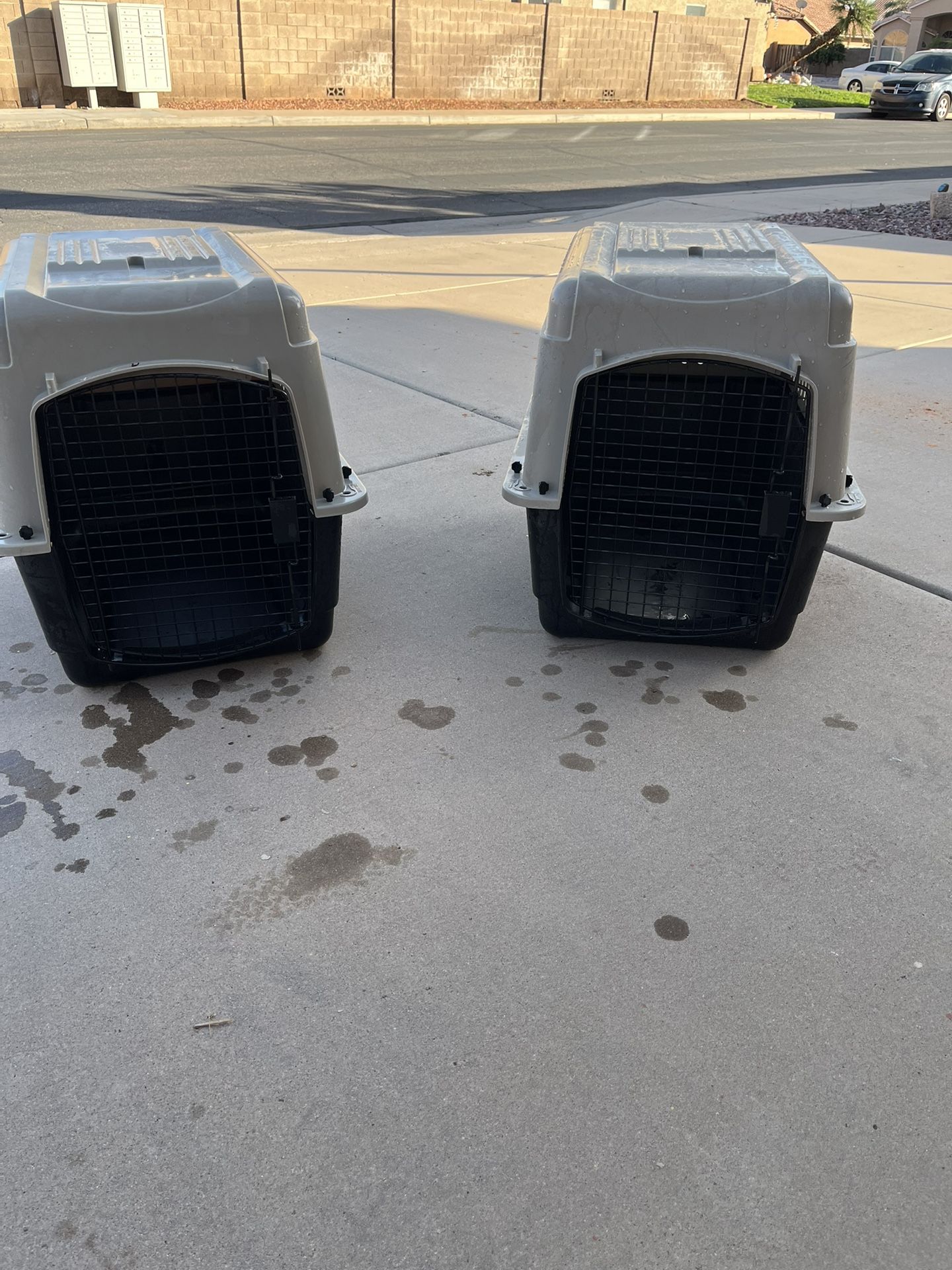 TWO almost brand new dog kennels/crates. $50 EACH or $85 for the PAIR. Airline friendly. Both used only once. Dimensions: Height - 25.5” Width -22.5” Length -32” Crossroads are Guadalupe and Country Club Dr. ***Cash or Venmo***
