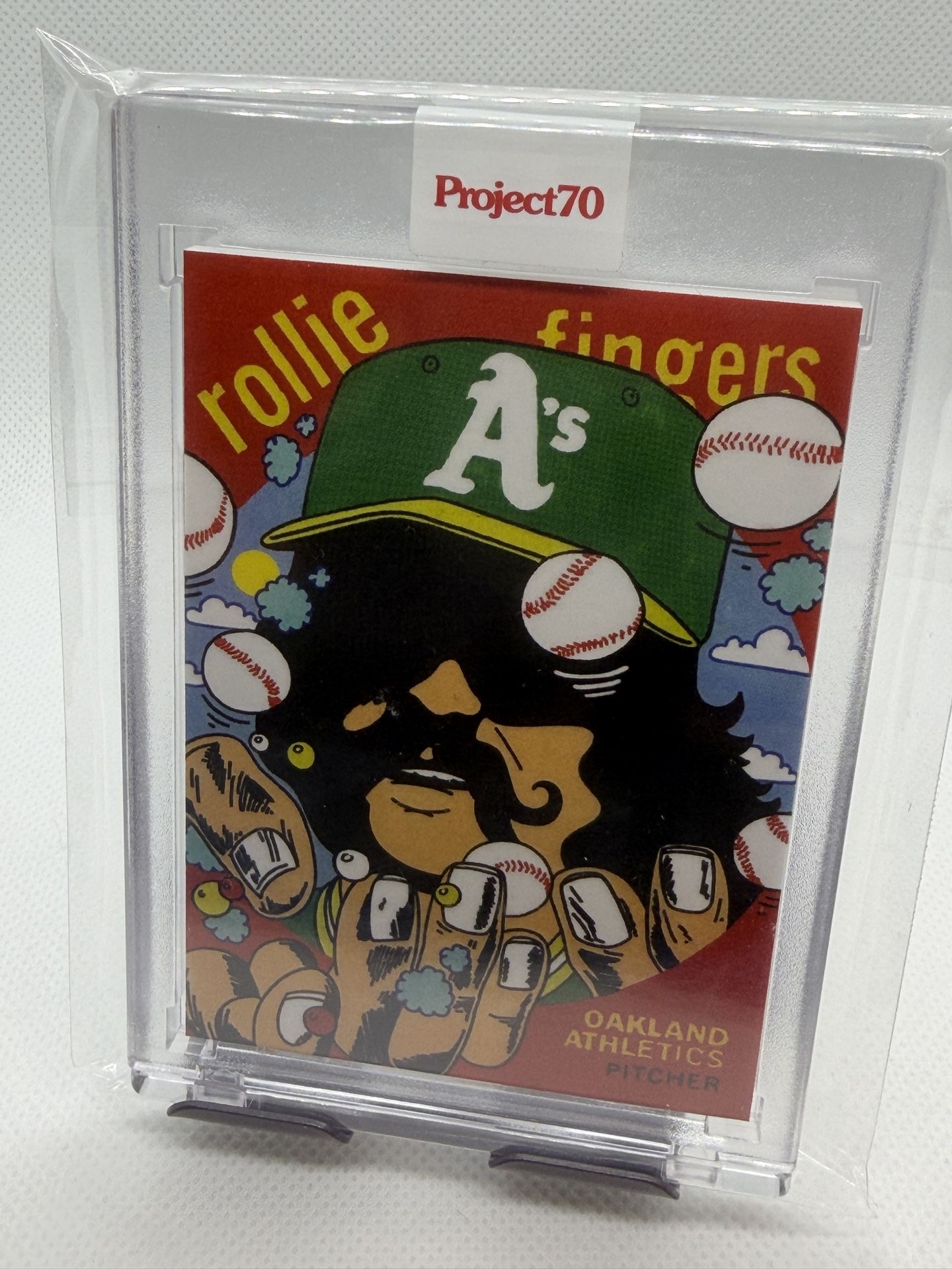 RARE FIND: 2021 Topps Project70 Rollie Fingers (Card #60) by artist Ermsy. This card is STILL SEALED in the original Topps high-end magnetic holder with the official security sticker intact. • Player: Rollie Fingers (Hall of Fame) • Artist: Ermsy (Psychedelic 1959 Topps Reimagining) • Status: Factory Sealed – Never opened, untouched since production. • Limited Edition: Only 3,666 of these were ever printed. This is the preferred way to collect Project70. The case is clear, the sticker is perfect, and the card is mint. Follow us for more sealed wax and singles: IG: @gluvology IG: @completegamerelace Price: $40