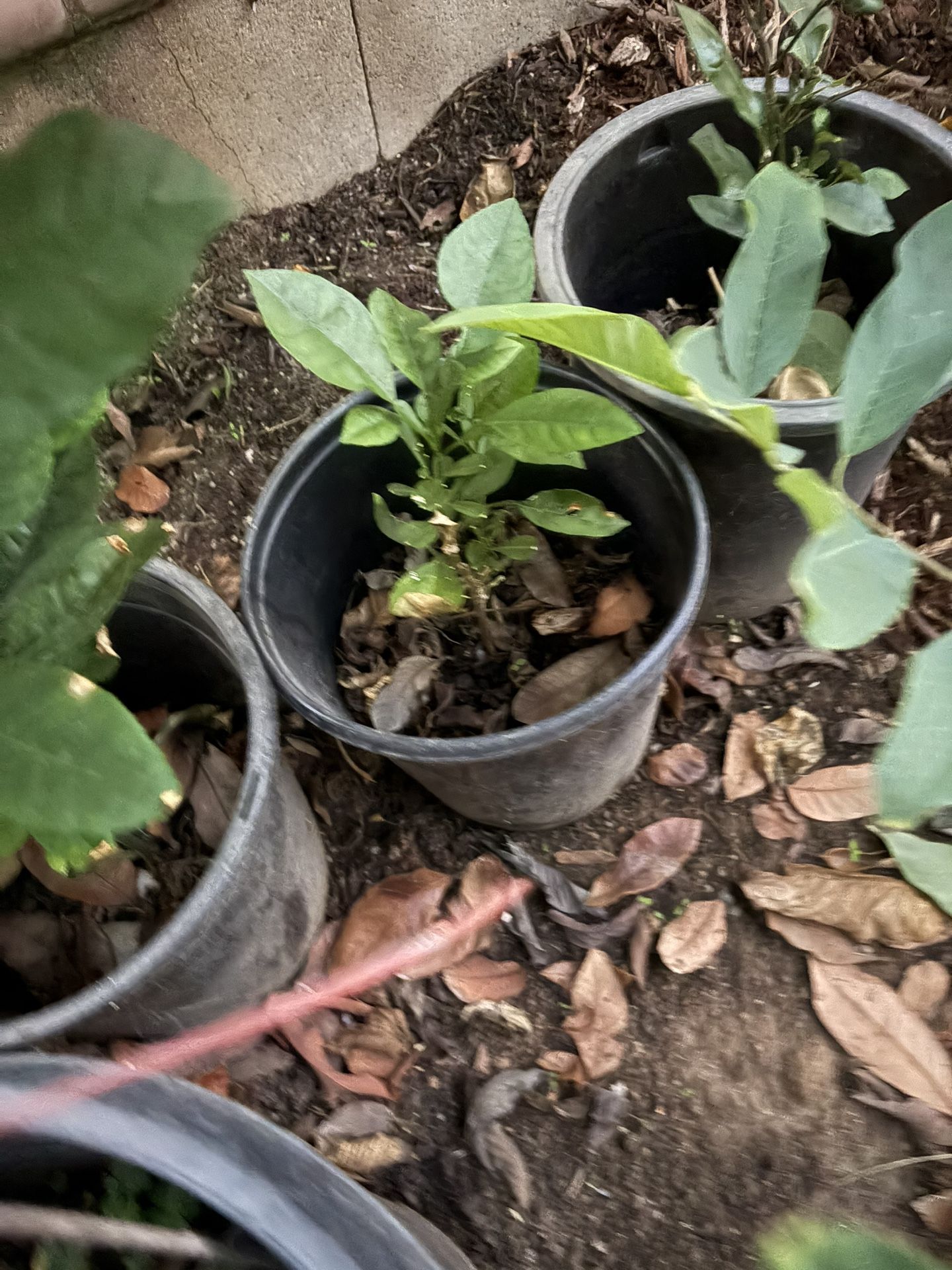 Healthy grapefruit trees grown from seed, each in a one-gallon pot. Multiple trees available. The last photo shows the mother tree bearing fruit (not for sale).