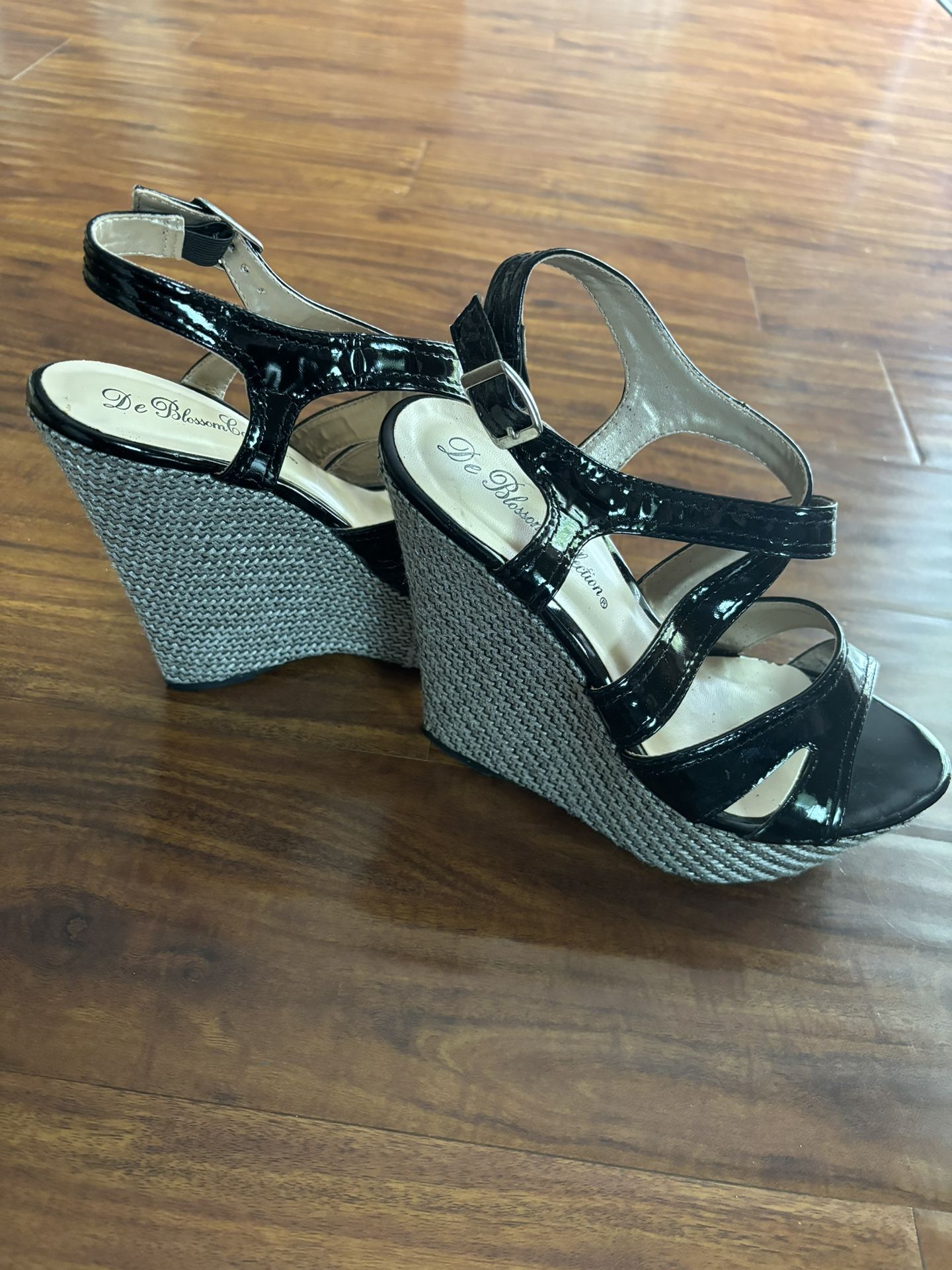 Black wedges faux patent leather