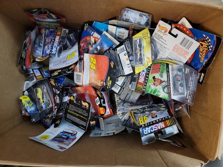 Over 200 packaged nascar items. Everything from several 1:24 scale cars to over 100 1:64 scale cars, and all kinds of other stuff. 70s-mid 2010s 5 boxes full of stuff One really cool thing is a card binder with over 100 cards of drivers and info $800 takes all.