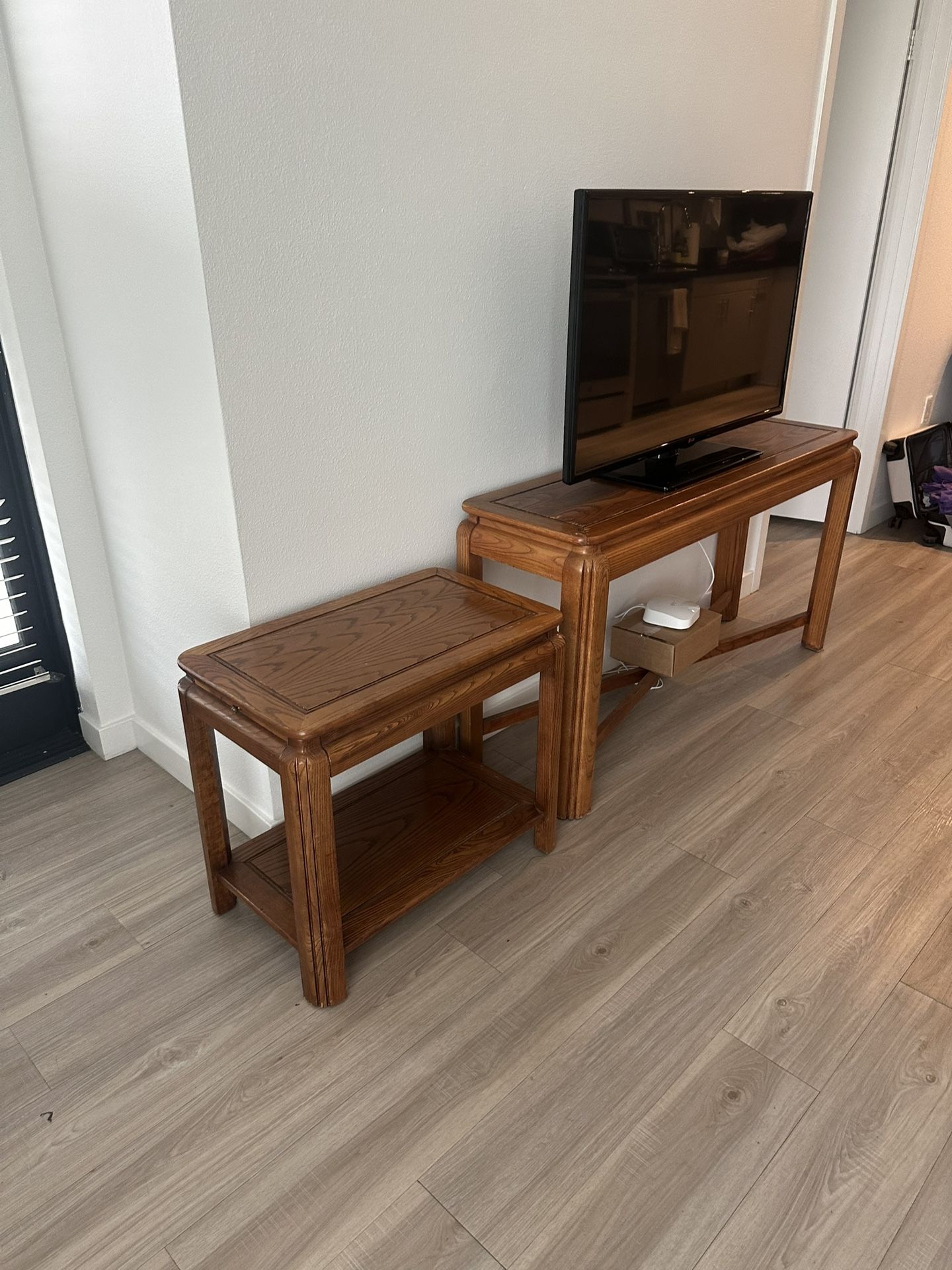 Vintage Mid Century Modern Console table and end table. Solid Wood Side Table: 25.5 x 15.5 x 22 TV Stand/Console Table: 15 x 51 x 28 Pickup in Koreatown. Delivery possibly available in LA area for additional $10. Pickup in Koreatown.