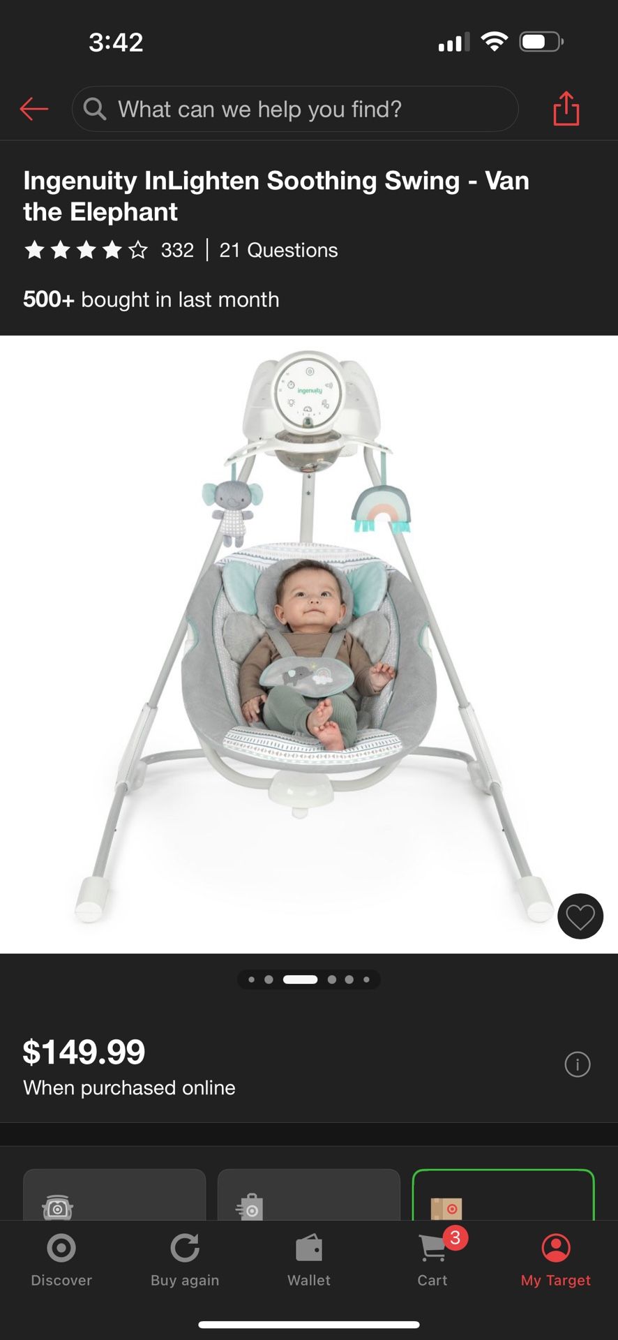 Ingenuity InLighten Soothing Swing - Van the Elephant