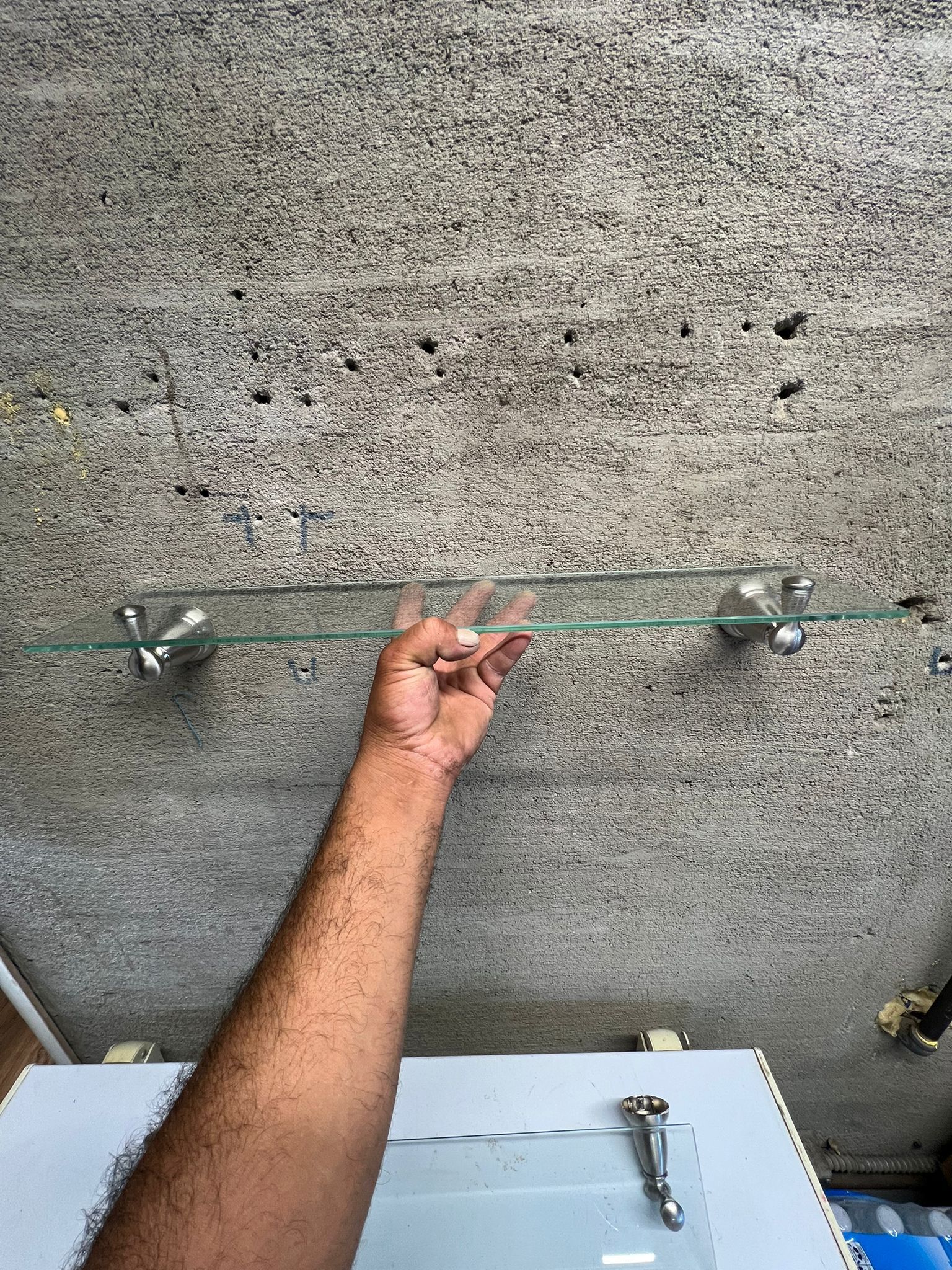I have 3 shelves each $25 Tengo 3 repisas cada una $25 Largo (width) 22 3/4” Ancho (height) 5”