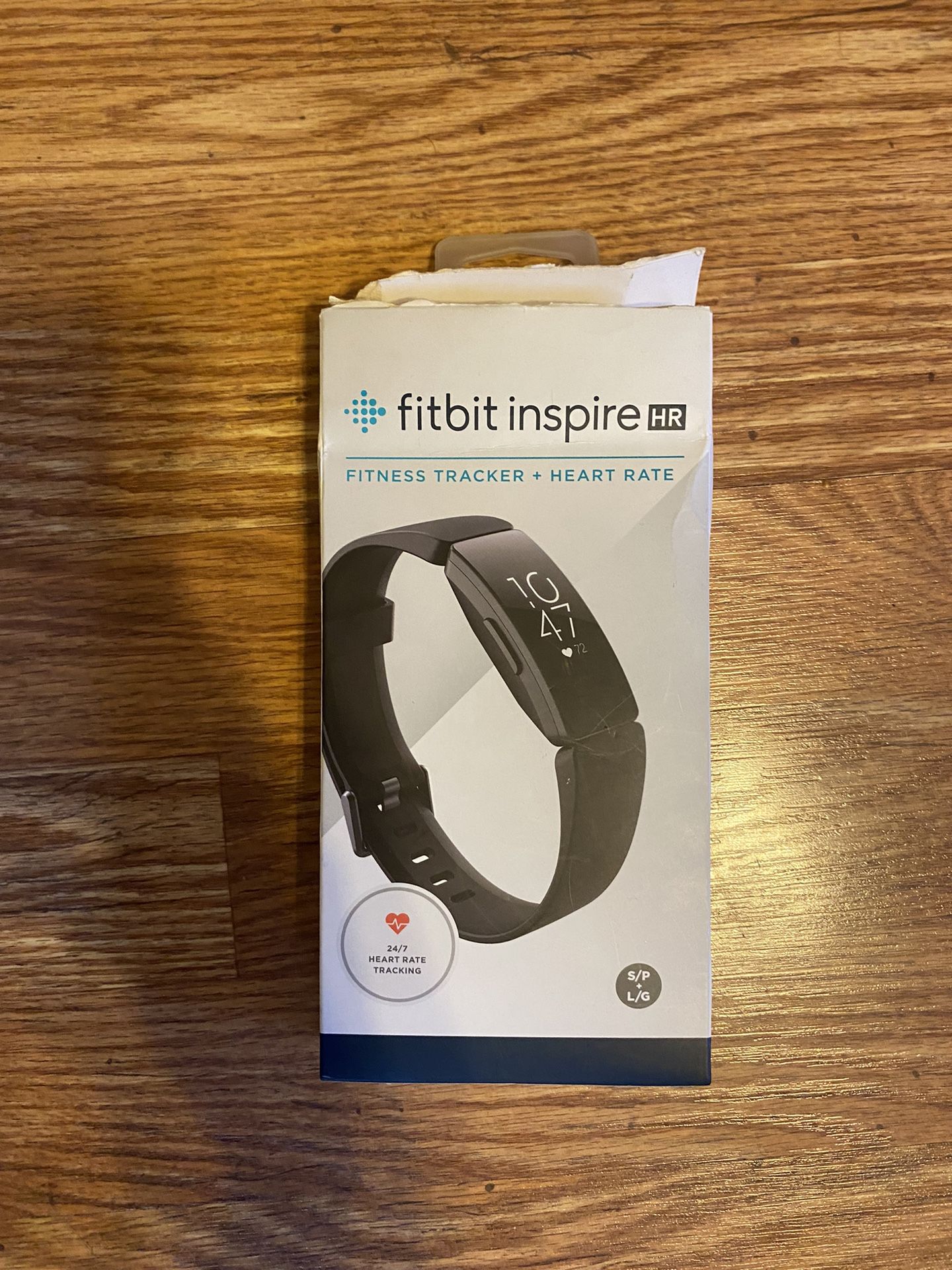 Includes charger and a bigger wrist strap. Fitbit tracks your activity, heart rate, and sleep. It is water proof and will sync up with your phone. Opened box NEVER USED