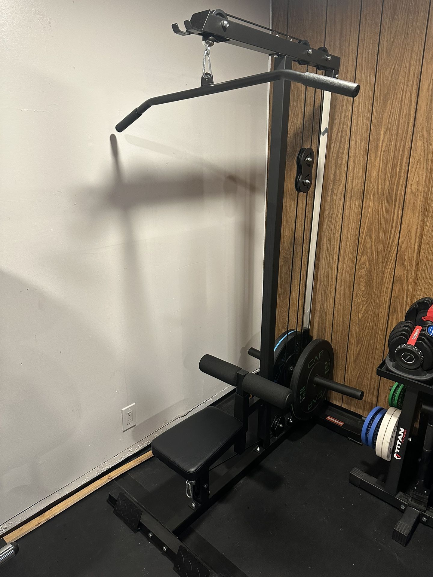I included the amazon listing that it was originally, no longer offered. But found another whitelisted item that is exactly the same. Why pay $210 new, buy my perfectly functional one for way less. I’ve upgraded and need the space back. The lat pulldown bar and the straight bar for low rows are obviously included. The knee pad can be adjusted up or down for comfort. 440 lb max capacity 60 lb (for transporting purposes) 47.5” deep 29” wide footprint 39” wide once you attach the lat pulldown bar 76” high. For transport, you could unbolt the front and back crossbars, but I wouldn’t recommend taking it apart further than that.