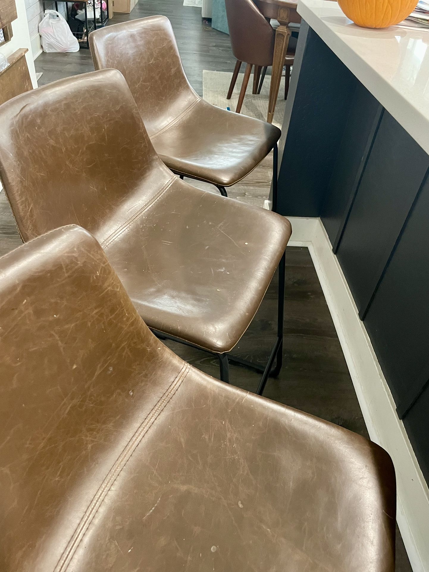 3 Brown And black Faux Leather Counter Stools