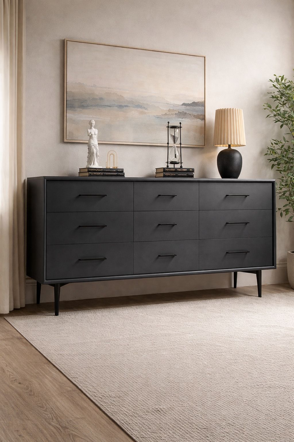 Modern charcoal MCM style dresser 9 drawers / credenza / tv stand